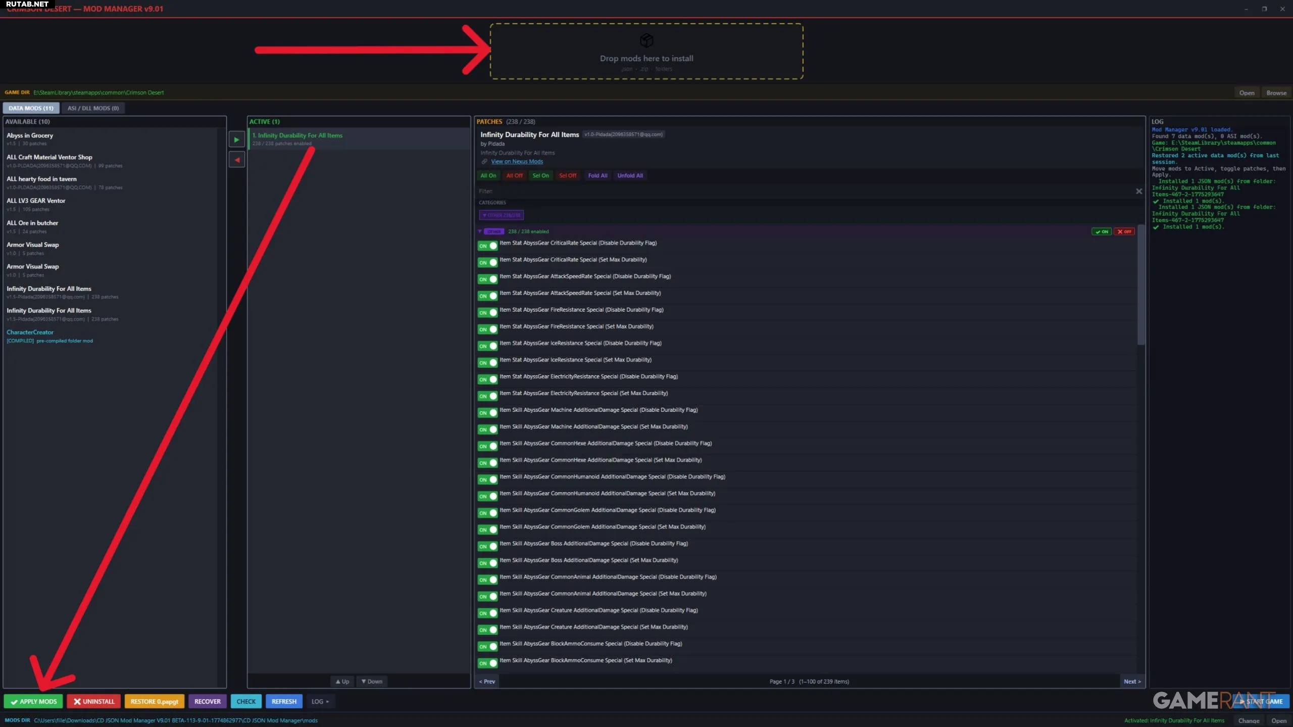 Как установить мод «Infinity Durability For All Items» в Crimson Desert