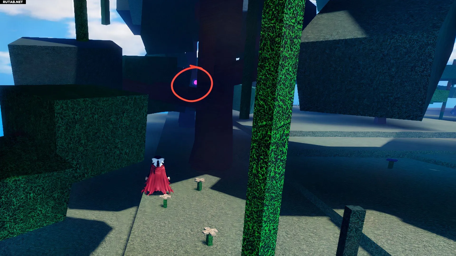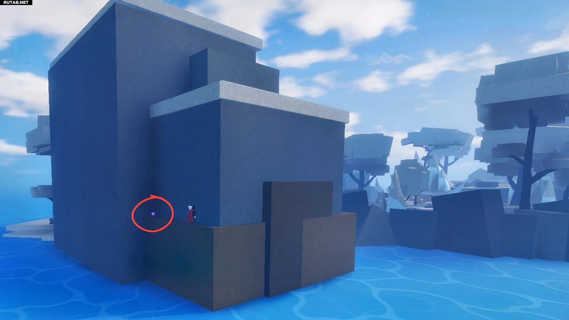 Чтобы найти первый фрагмент, отправляйтесь на Снежный остров и идите на северную часть карты, где остров заканчивается. Проверьте четвёртое дерево рядом с маленьким красным грибом. Фрагмент (светящийся фиолетовый шар) прикреплён к его стволу.