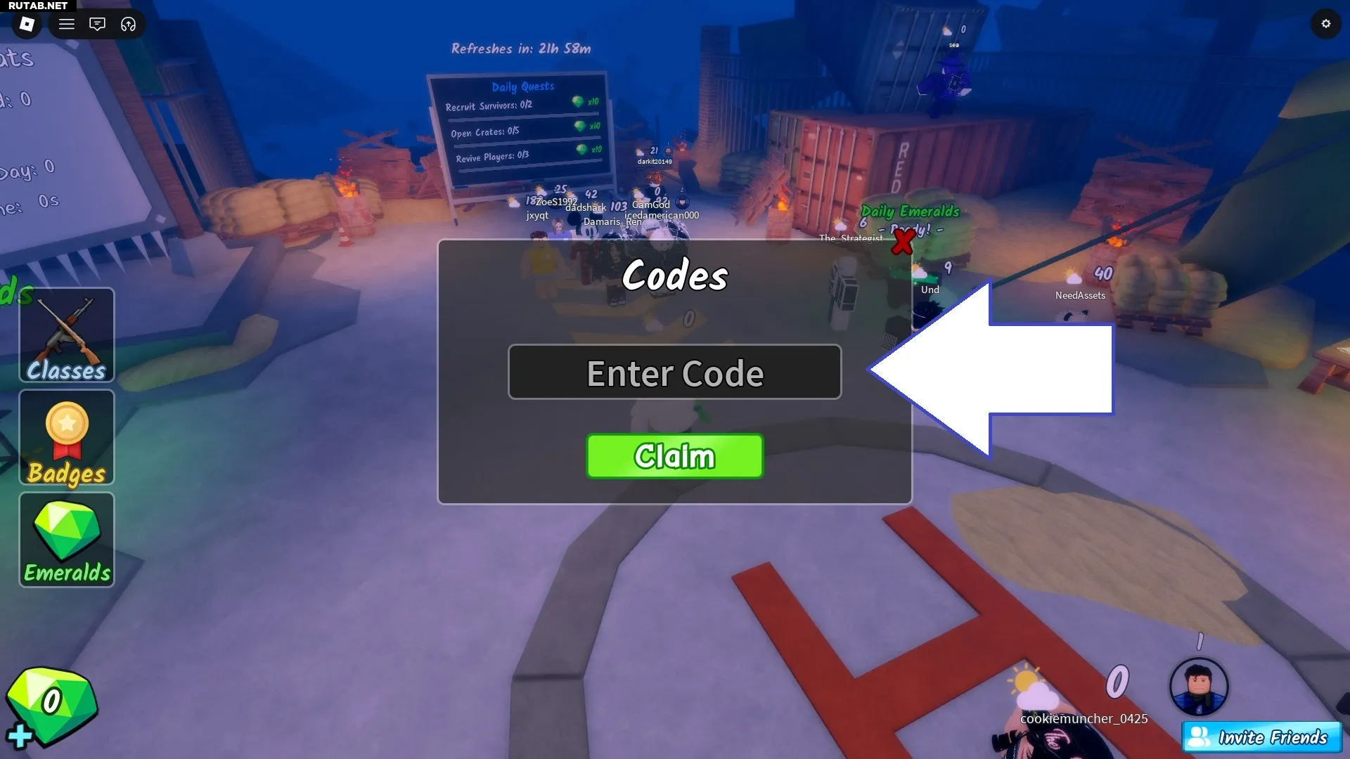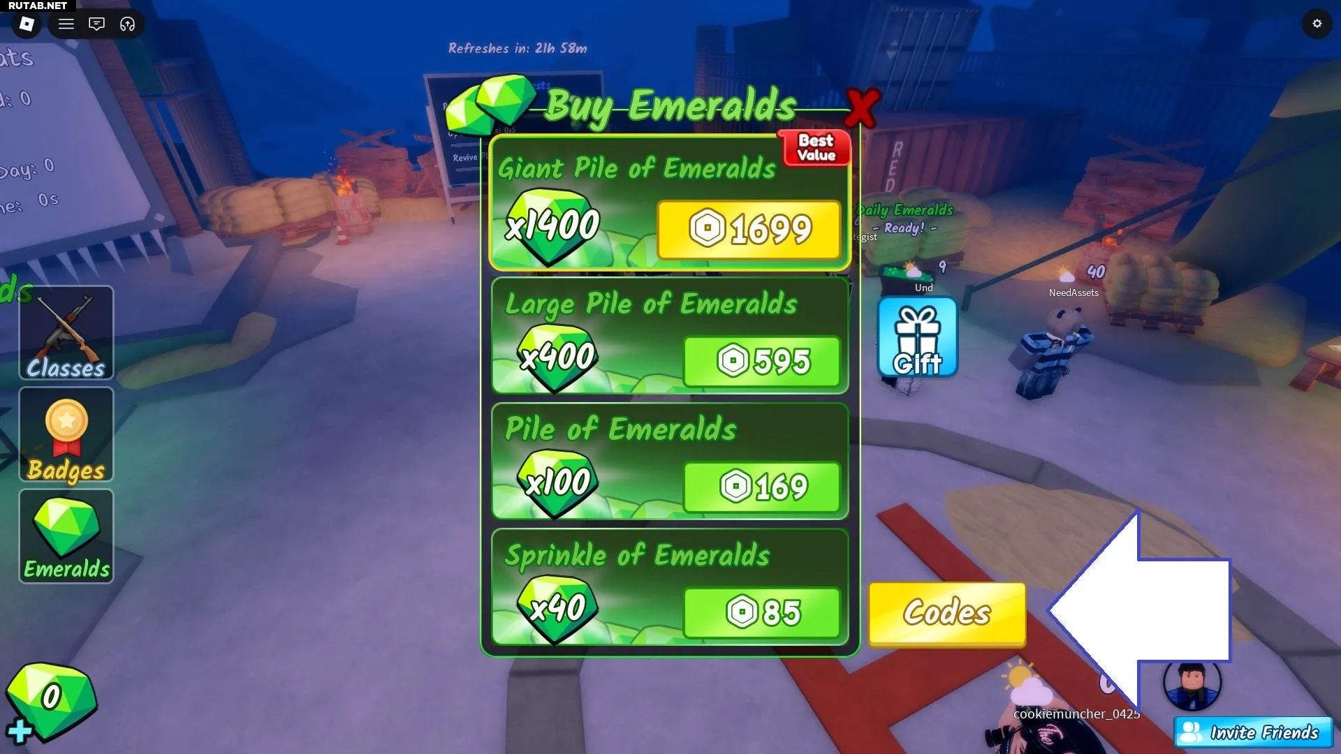 Чтобы быстрее развиваться, вам понадобятся изумруды (Emeralds), на которые можно купить новые классы персонажей. Самый простой способ получить их — использовать активные промокоды.
