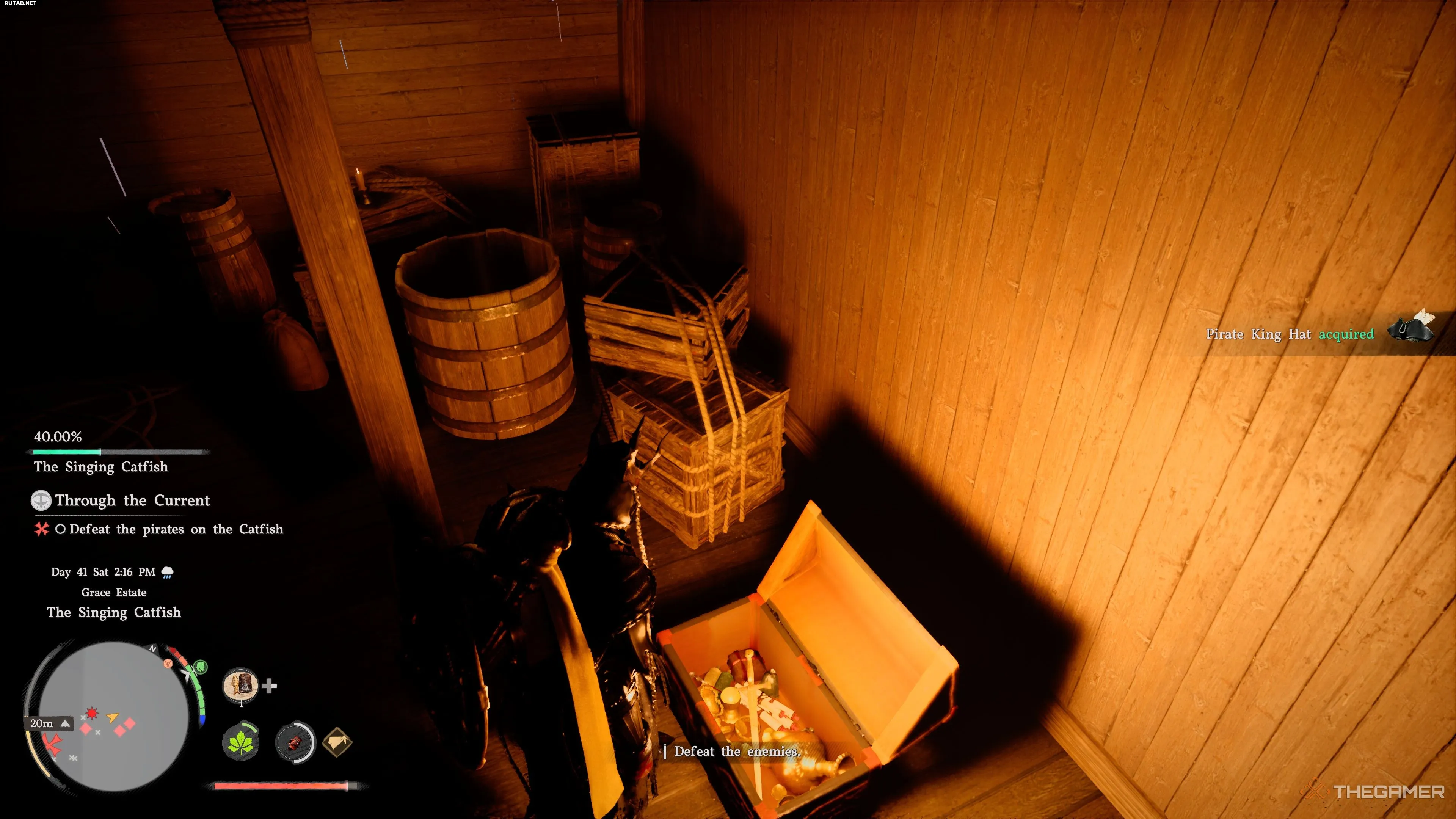 Внутри откройте сундук с сокровищами и заберите Шляпу короля пиратов.