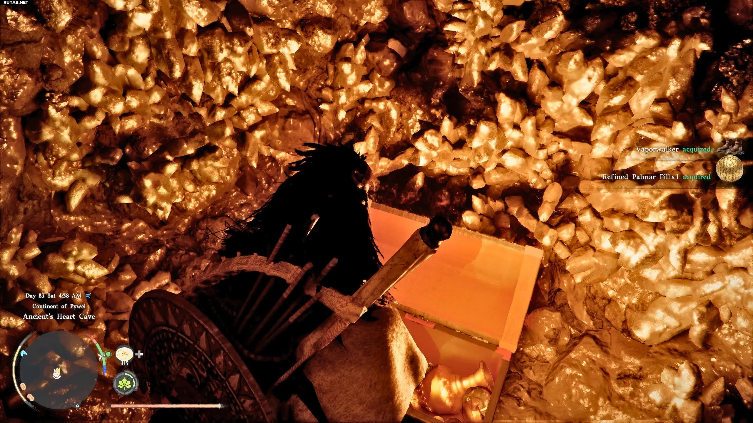 Как только вы окажетесь в пещере за водопадом, используйте сильные атаки или удар пальмары, чтобы разрушить камень, блокирующий вход. Внутри пещеры вы найдёте сундук с сокровищами, открыв который, получите улучшенный болюс пальмары и сапоги Водоходы в Crimson Desert.