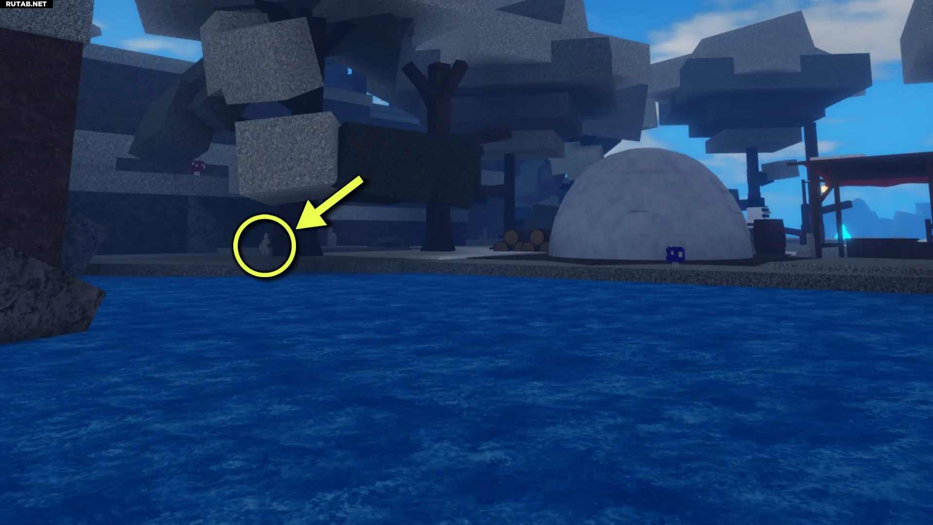 Четвёртый Древний Фрагмент спрятан на Снежном Острове. Отправляйтесь в центр деревни, расположенной посередине острова. Найдите водоём позади иглу. Встав в центр этого водоёма, повернитесь лицом к иглу и посмотрите на дерево слева. За ним и лежит фрагмент.