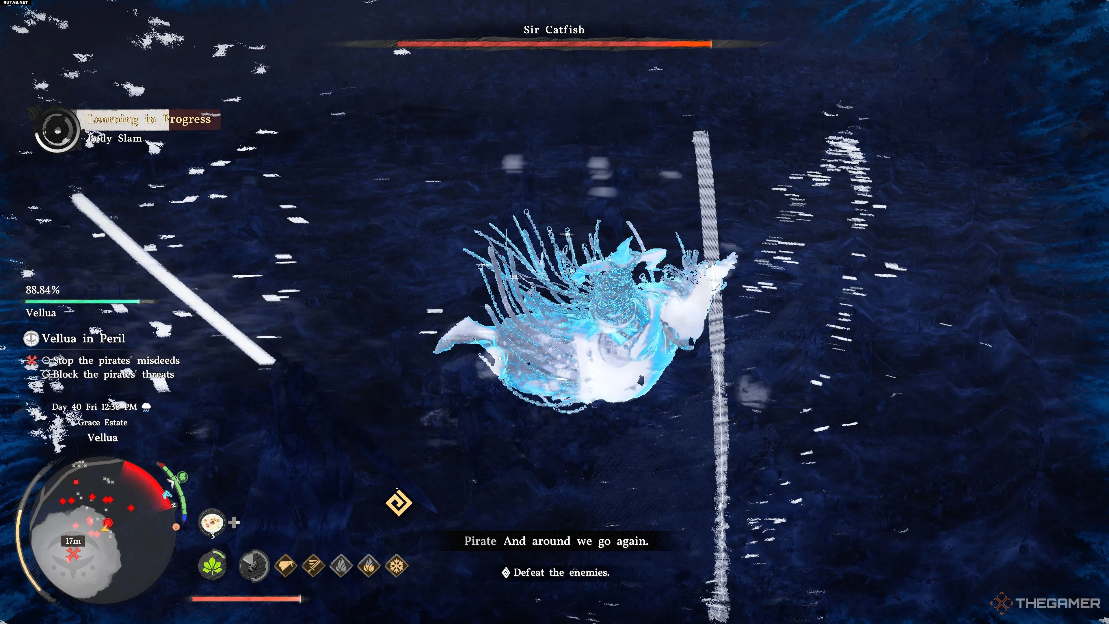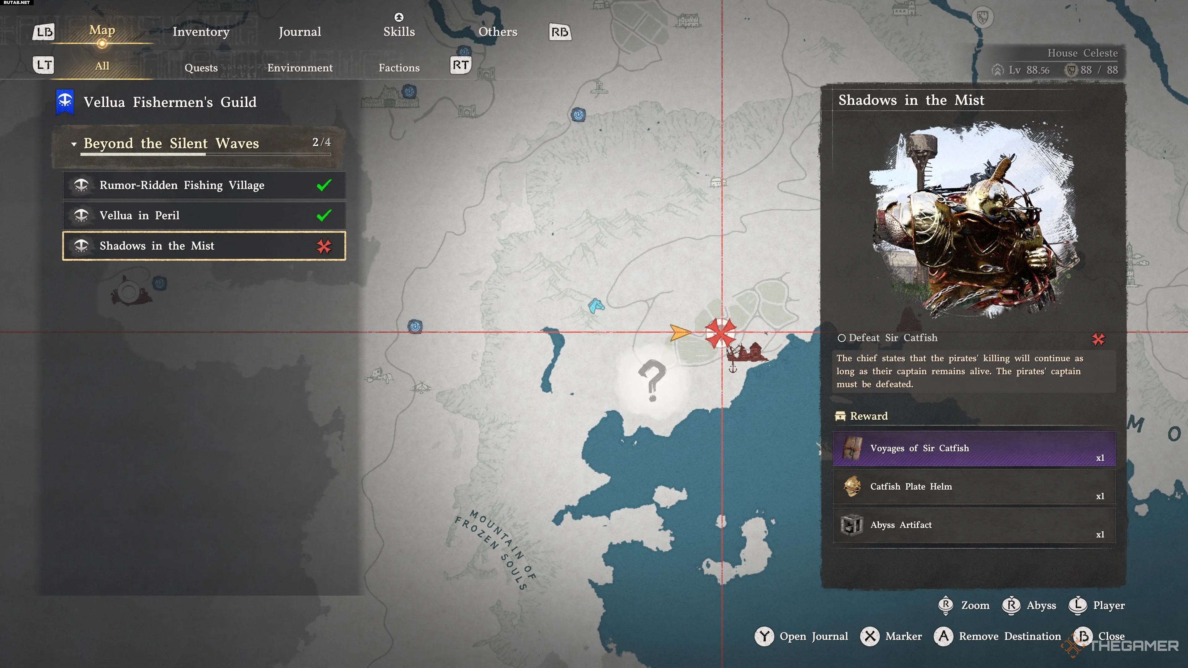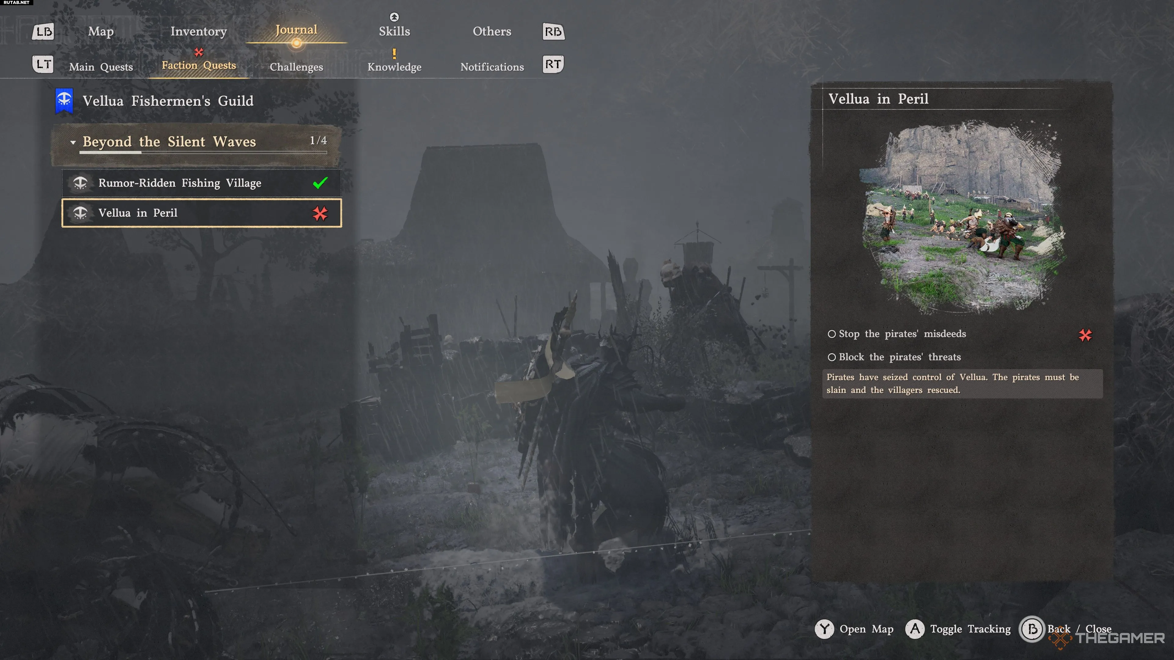 Продвигайтесь через задание «Слухи о рыбацкой деревне» (Rumor-Ridden Fishing Village), а затем начните квест «Веллуа в опасности» (Vellua in Peril), чтобы добраться до сонной рыбацкой деревушки, которую захватили Сэр Водяной и его группа пиратов-культистов.