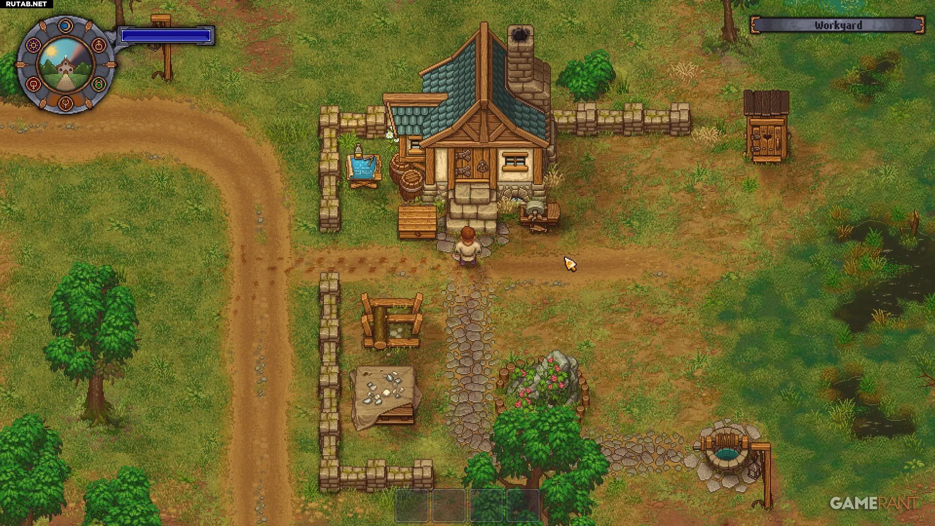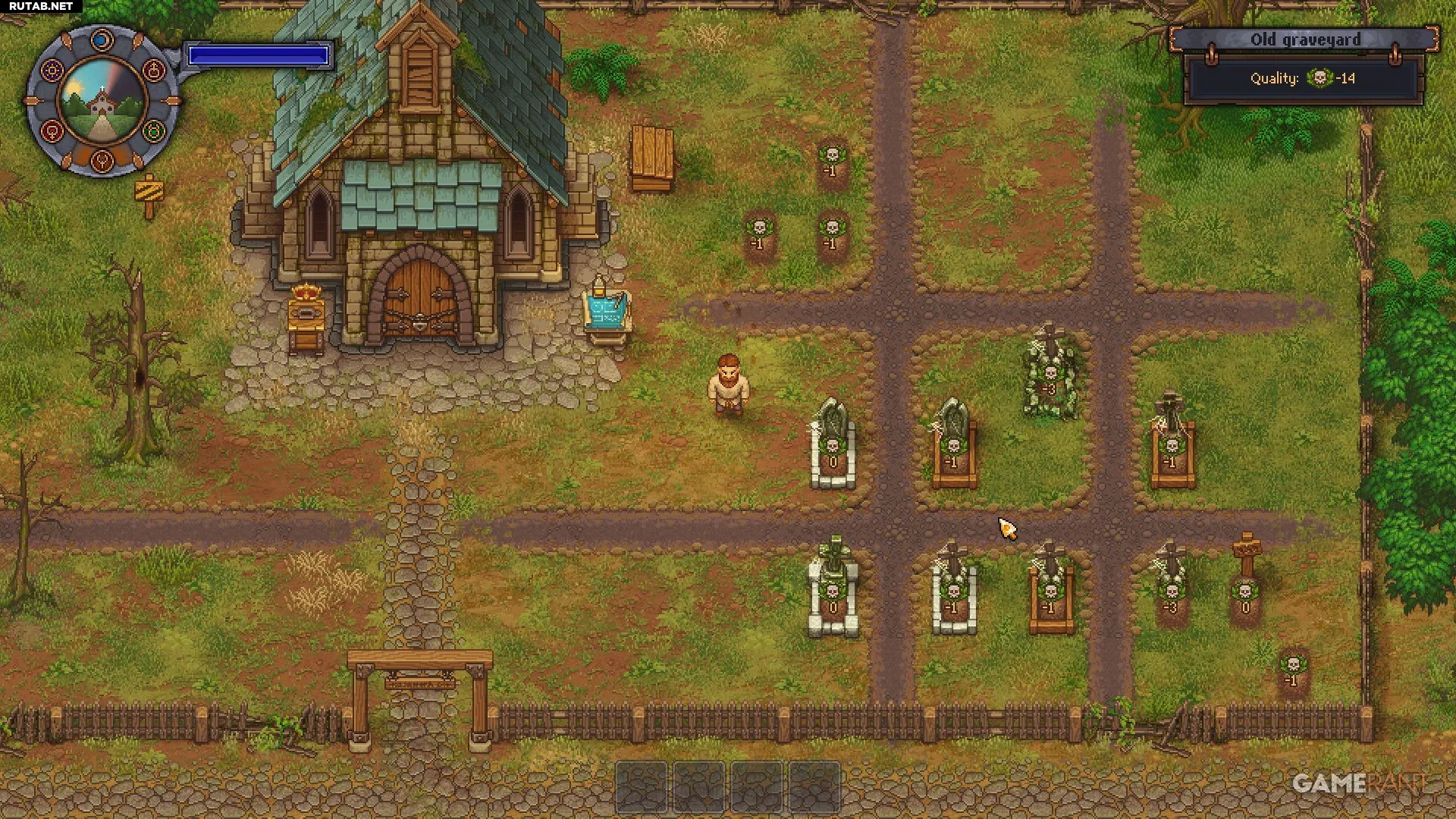 Этот механизм похож на другие уютные симуляторы вроде Stardew Valley, но отличная особенность Graveyard Keeper в том, что спать можно в любое время и на любой срок, а не только на всю ночь. Фактически, чтобы просто сохраниться перед выходом, можно мгновенно нажать кнопку пробуждения, почти не потеряв времени игрового дня.