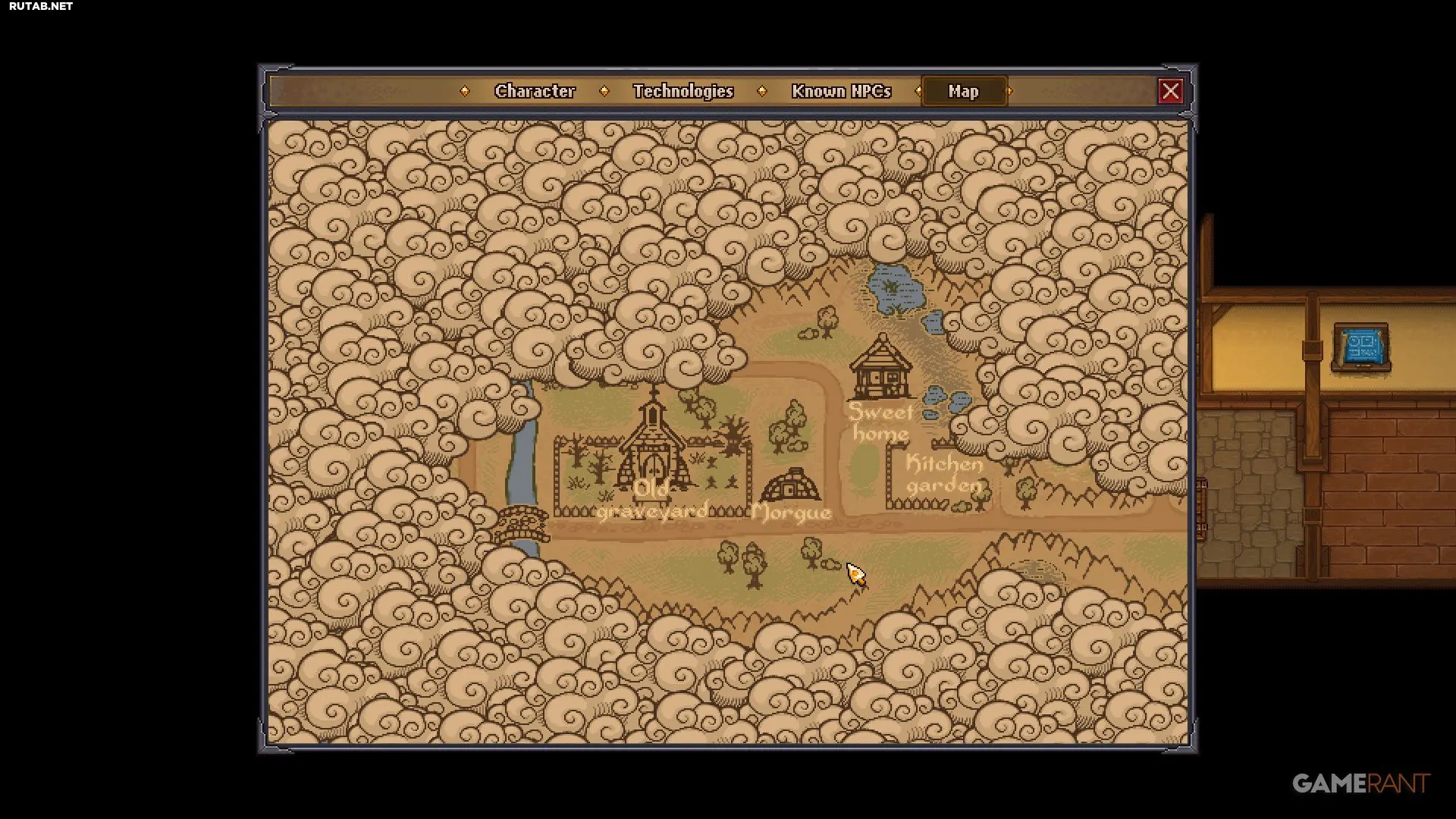 Во время обучения игрока проводят по кладбищу и запертой церкви. Кровать находится не в церкви, а в доме игрока, который отмечен на карте к северо-востоку и подписан как «Милый дом» (Sweet Home).