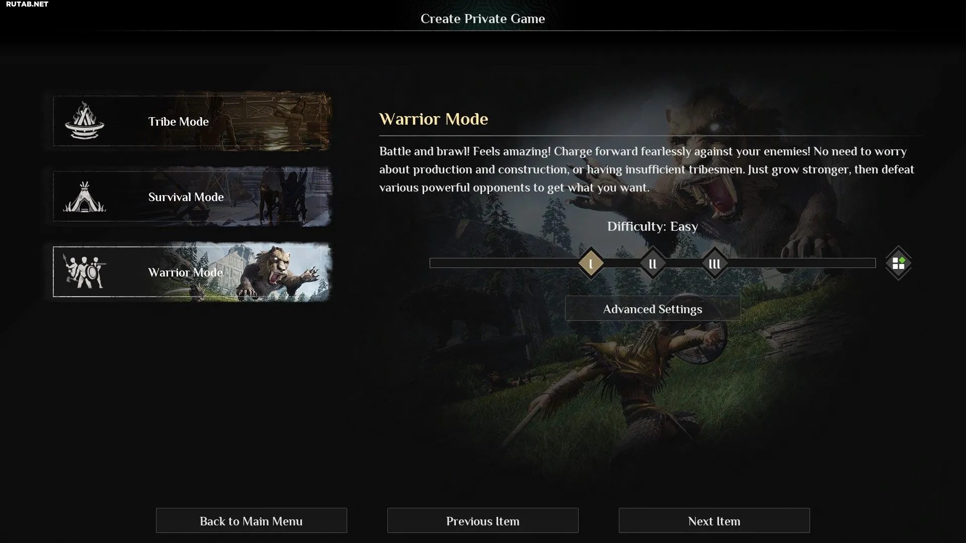 Три режима игры позволяют настроить Soulmask под свои предпочтения: от размеренного управления базой до динамичных сражений с боссами. Режимы в основном влияют на скорость прогрессирования и сложность боя, а некоторые включают уникальные механики вроде изменённого дерева технологий.
