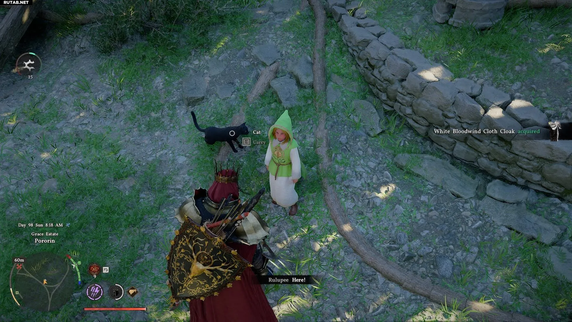 Плащ можно получить от Рулупи, одной из Шай, живущих в Порорине. Этот персонаж перемещается по деревне, но его легко узнать по белому платью, зеленой рубашке и капюшону. Как и Лэнфорд, Рулупи принимает только корзины с цветами. Если все корзины в магазинах куплены, придется подождать, пока ассортимент не обновится.
