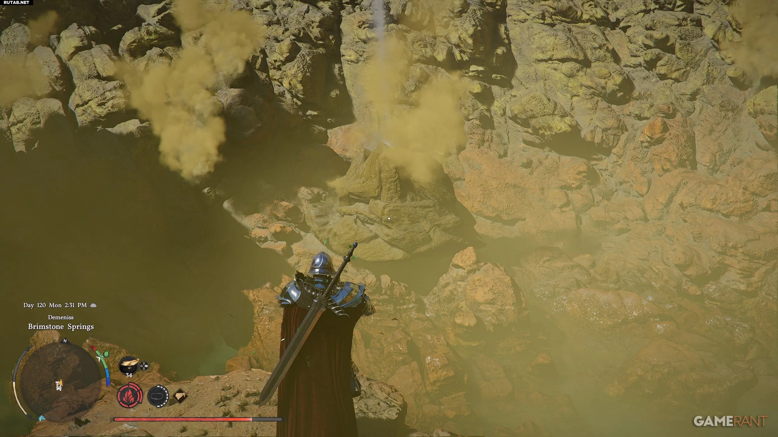 - Сернокрабы хексы обитают в Серных источниках в регионе Деменисс. Их можно найти далеко на севере, над второй буквой «Е» в названии «Demeniss» на горе Мёртвого огня.