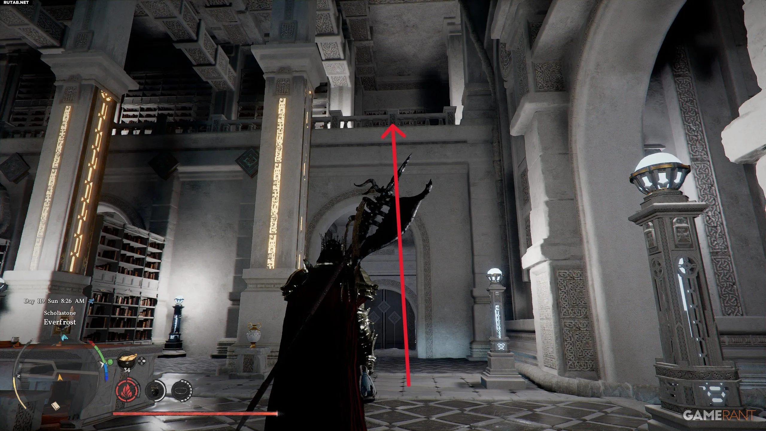 - Взберитесь по восточной стене на верхний этаж библиотеки.