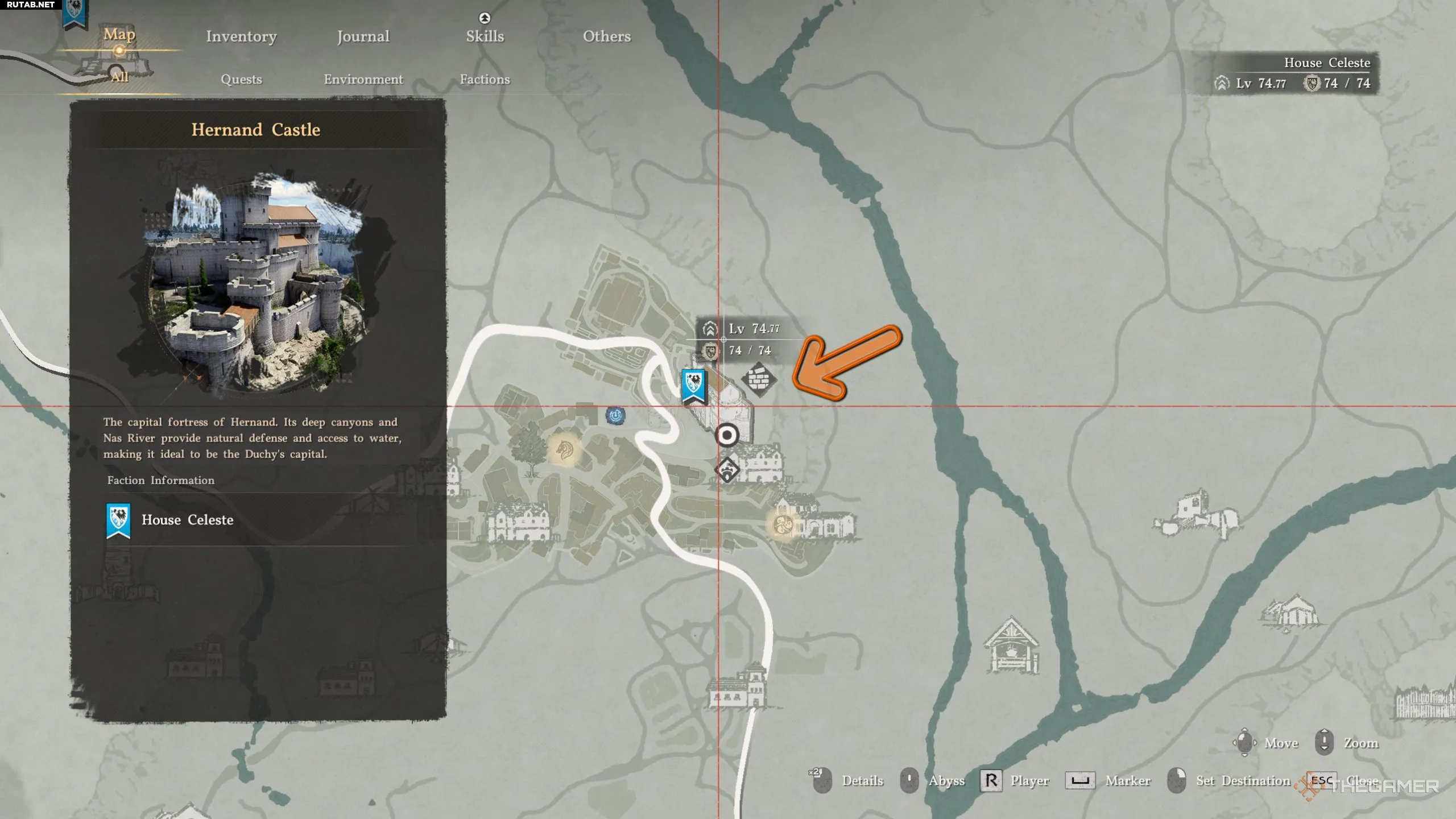 Чтобы найти сундук, телепортируйтесь к «Следу Бездны» в самом городе. Перед началом убедитесь, что у вас есть маска и хотя бы один ключ. От точки телепортации идите по дороге вверх к замку слева.
