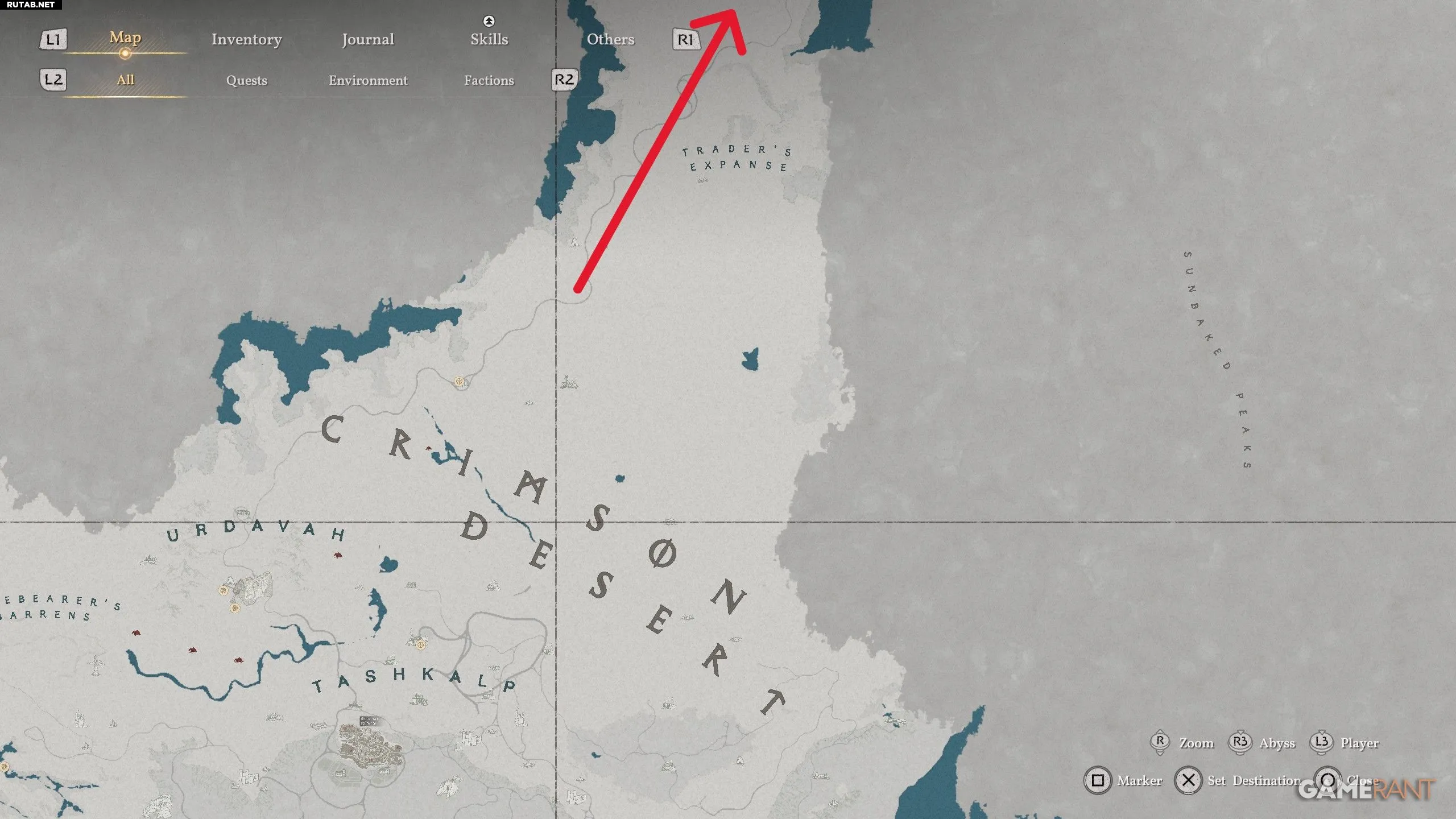Если вы ищете След Бездны (точку быстрого перемещения), то направляйтесь под букву «R» в названии «Varnia» на карте. Там вы сможете встать на платформу, чтобы активировать возможность быстрого перемещения сюда. Мы также отметили это место на карте выше.