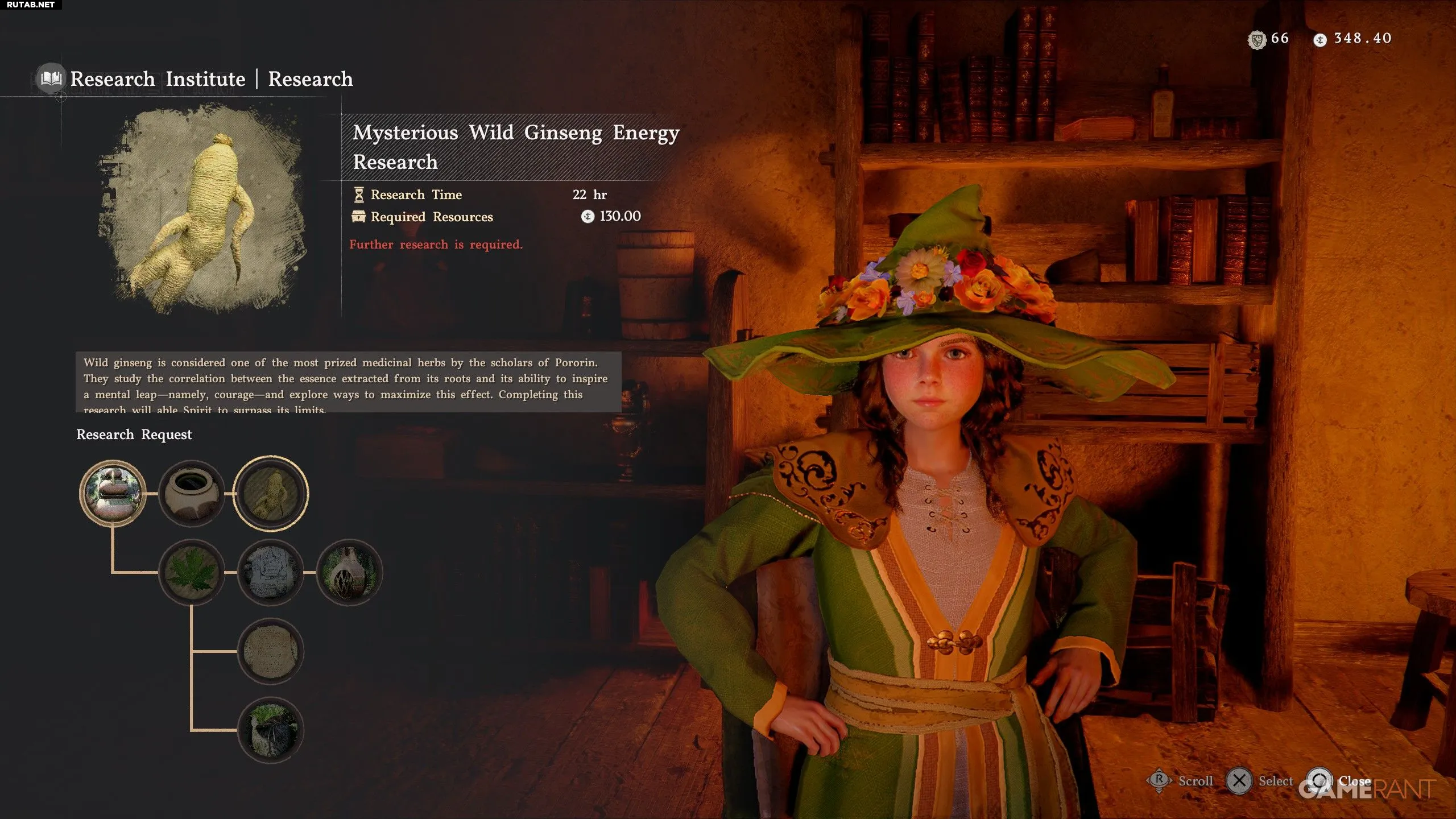 - Вернитесь к помощнику и отдайте ему x1 женьшень, чтобы возобновить исследование.