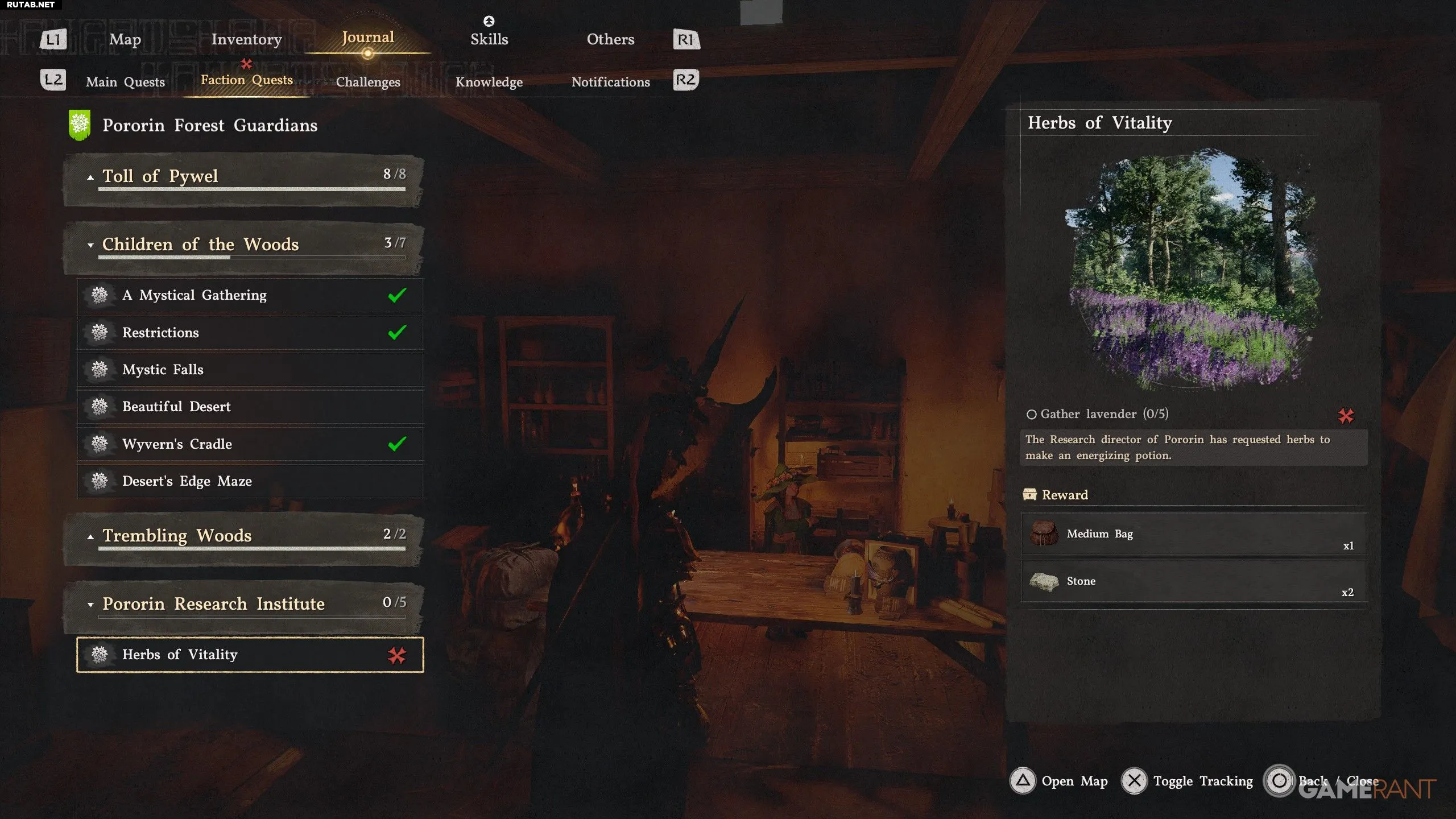- Затем завершите квест фракции Порорин «Исследование лекарственных трав».