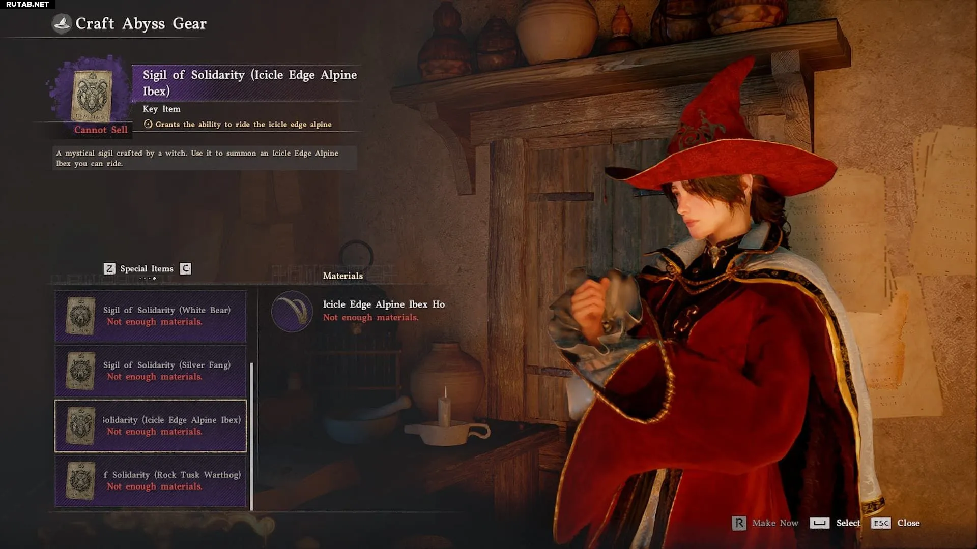 После победы над Мореном отправляйтесь к любой хижине ведьмы в Crimson Desert и поговорите с ней. Выберите опцию «Создать снаряжение Бездны», затем перейдите на вкладку «Специальные предметы». Там вы найдёте возможность создать «Знак солидарности», используя «Рог снежного ибекса», полученный за победу над боссом. Создайте его и используйте из инвентаря, чтобы разблокировать скакуна.