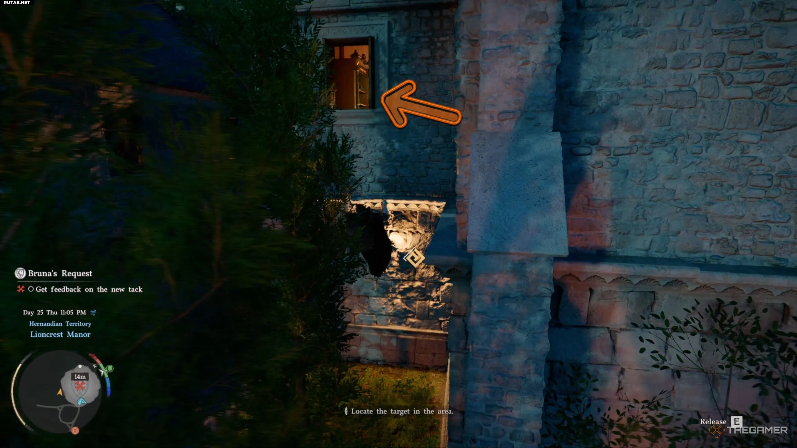 В записке покупатель сообщает, что ждёт вас в поместье Лайонкрест. Хотя официальный доступ откроется позже в рамках другого задания, проникнуть туда можно и раньше. Слева от главного входа на стене вы увидите деревянное окно.
