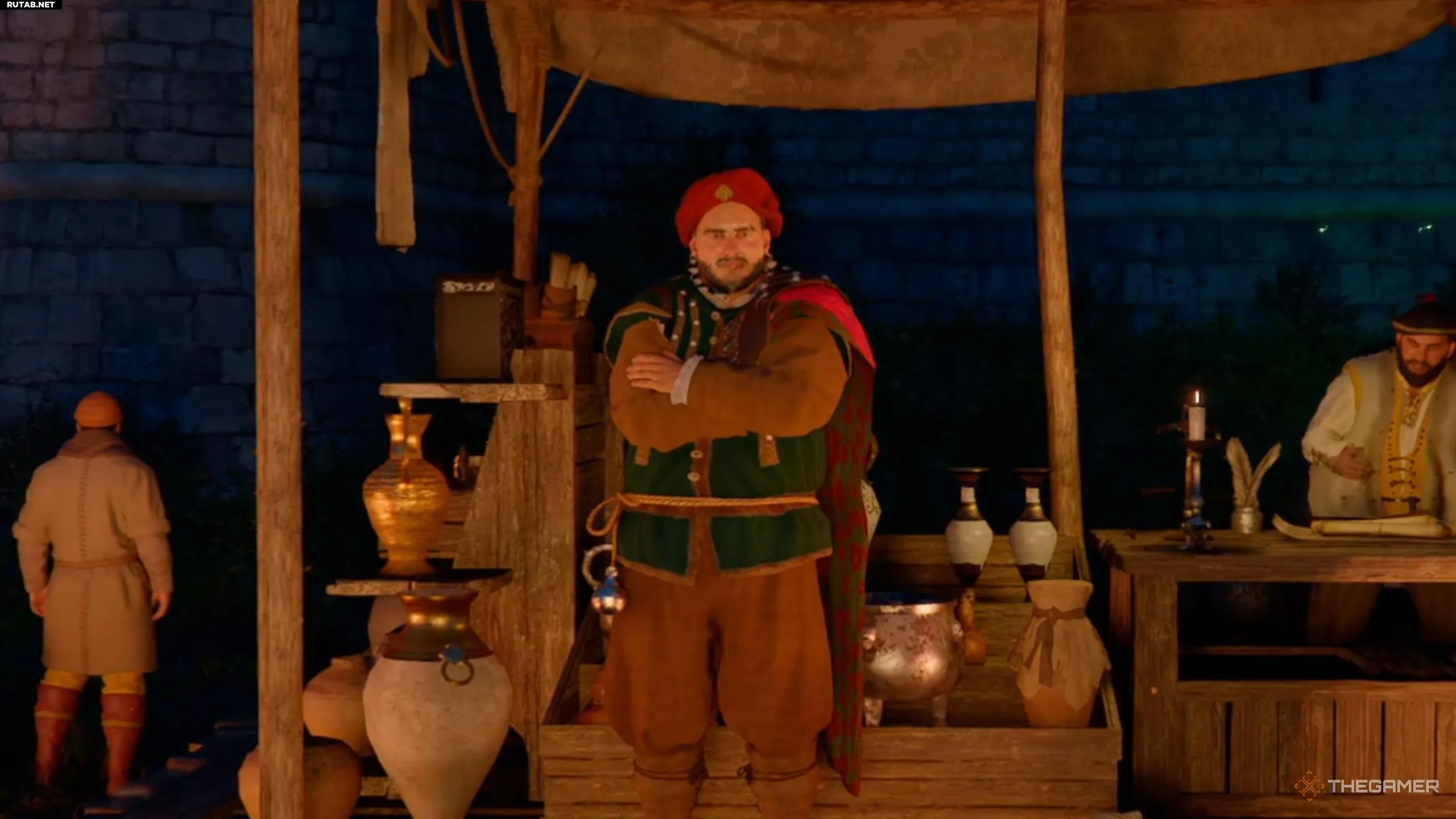 Иногда из-за ошибки этот NPC может отсутствовать. Проблема решается перезагрузкой игры или временным уходом из локации и возвращением.