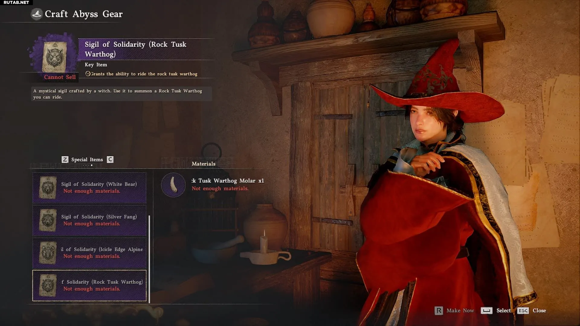 После победы над Равоком вы получите в качестве награды коренной зуб скального клыкастого бородавочника. Отнесите его любой из ведьм в Crimson Desert и создайте из зуба «Печать солидарности (Скальный клыкастый бородавочник)». Для этого: