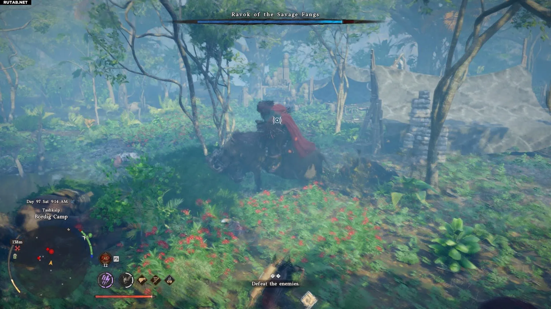 Босса, которого нужно победить, зовут Дикий Клык Равок. Это огр, оседлавший огромного кабана и вооружённый пушкой, которая может сбить вас с ног. Подобно боссу, открывающему ибекса, Равок связан с заданием, но, судя по всему, для его появления не нужно выполнять никаких предварительных условий.