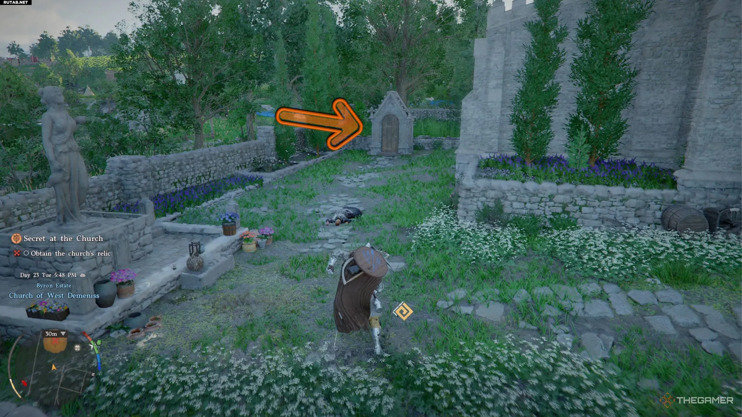 После разговора с неигровым персонажем, укрывающимся в хижине, она расскажет вам о реликвии, спрятанной в секретном подвале. После этого диалога на вашей карте будет отмечена область возле главной церкви. Чтобы найти подвал, можно отправиться к церкви, но заходить внутрь не обязательно.