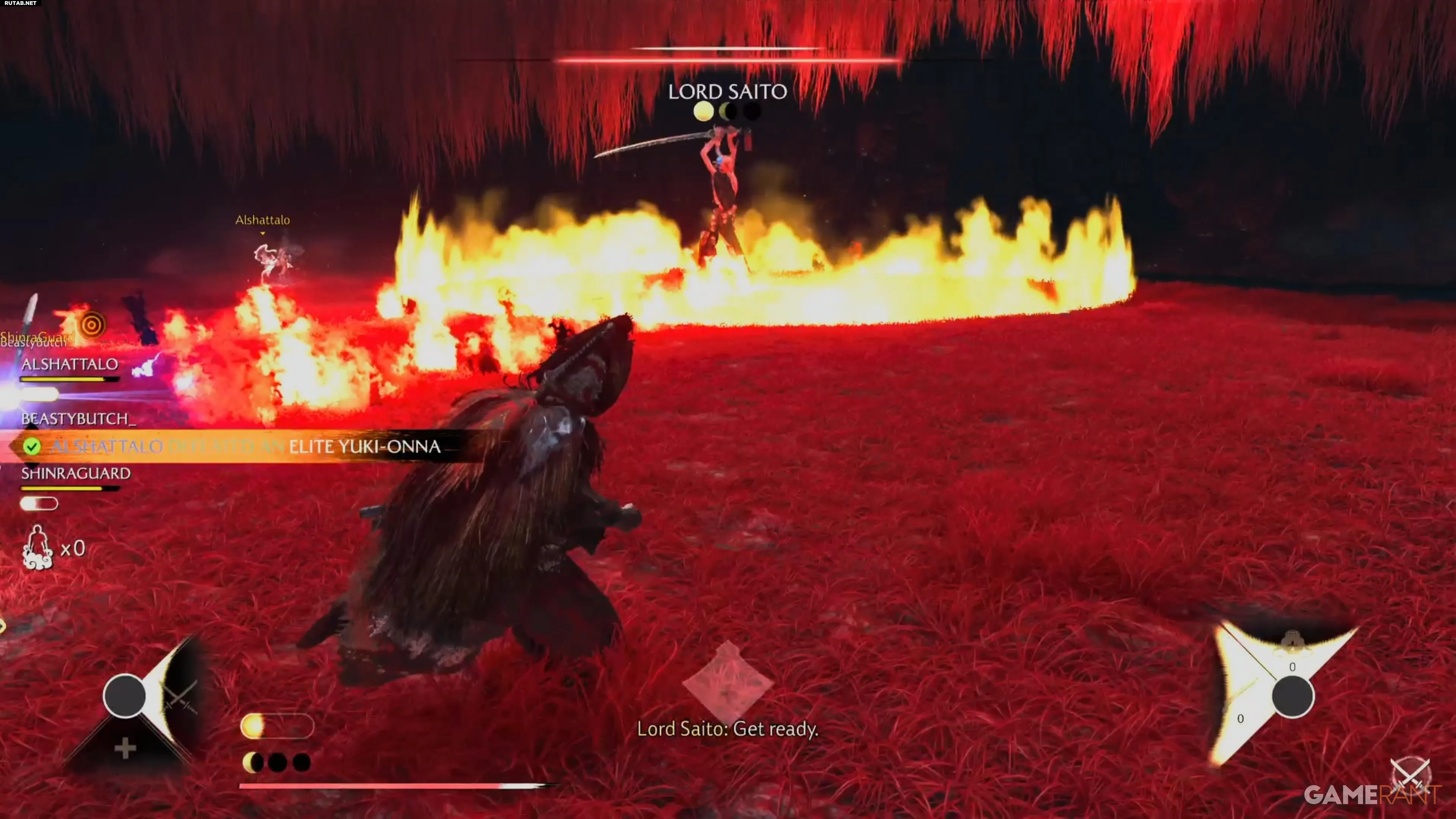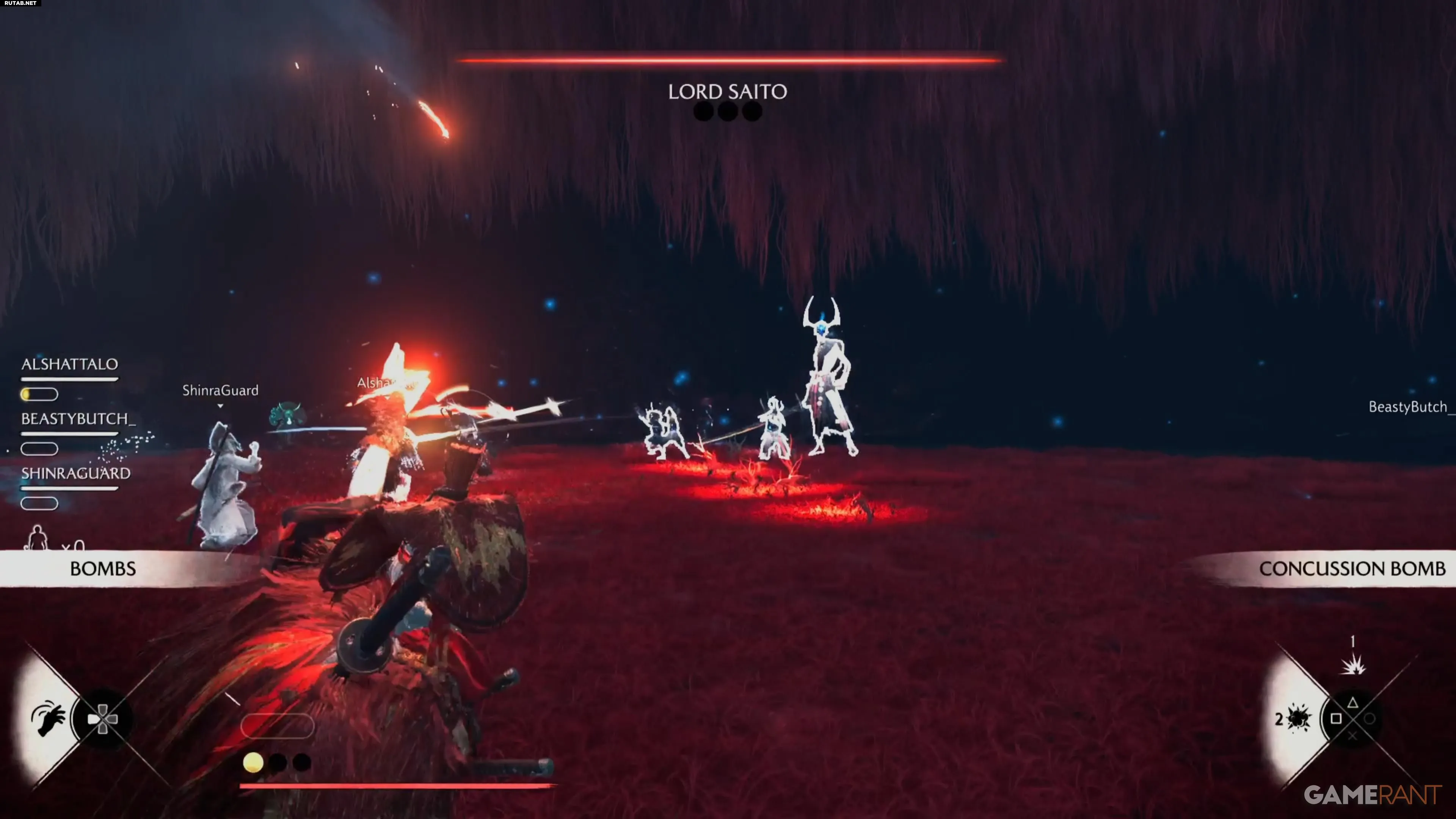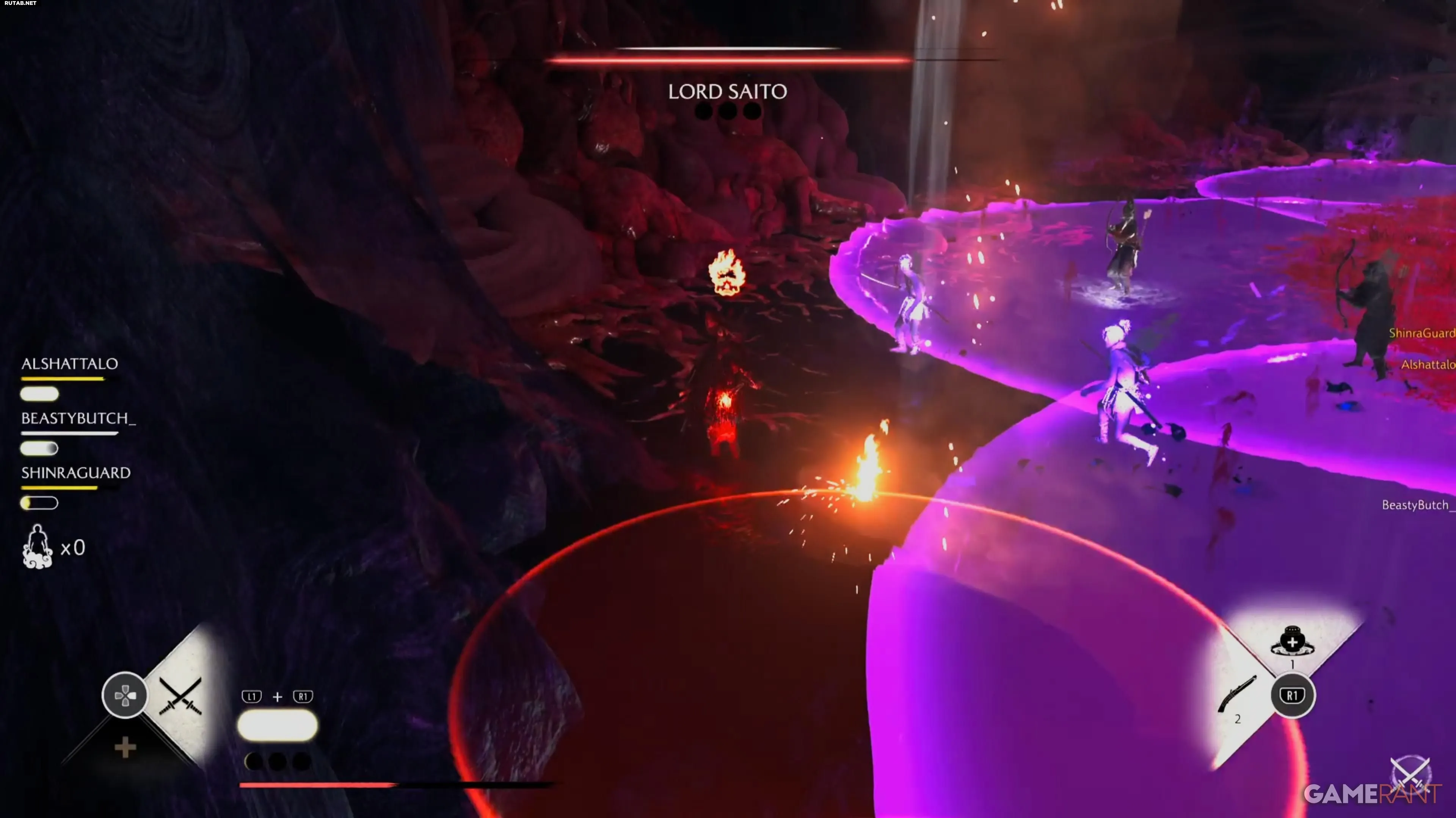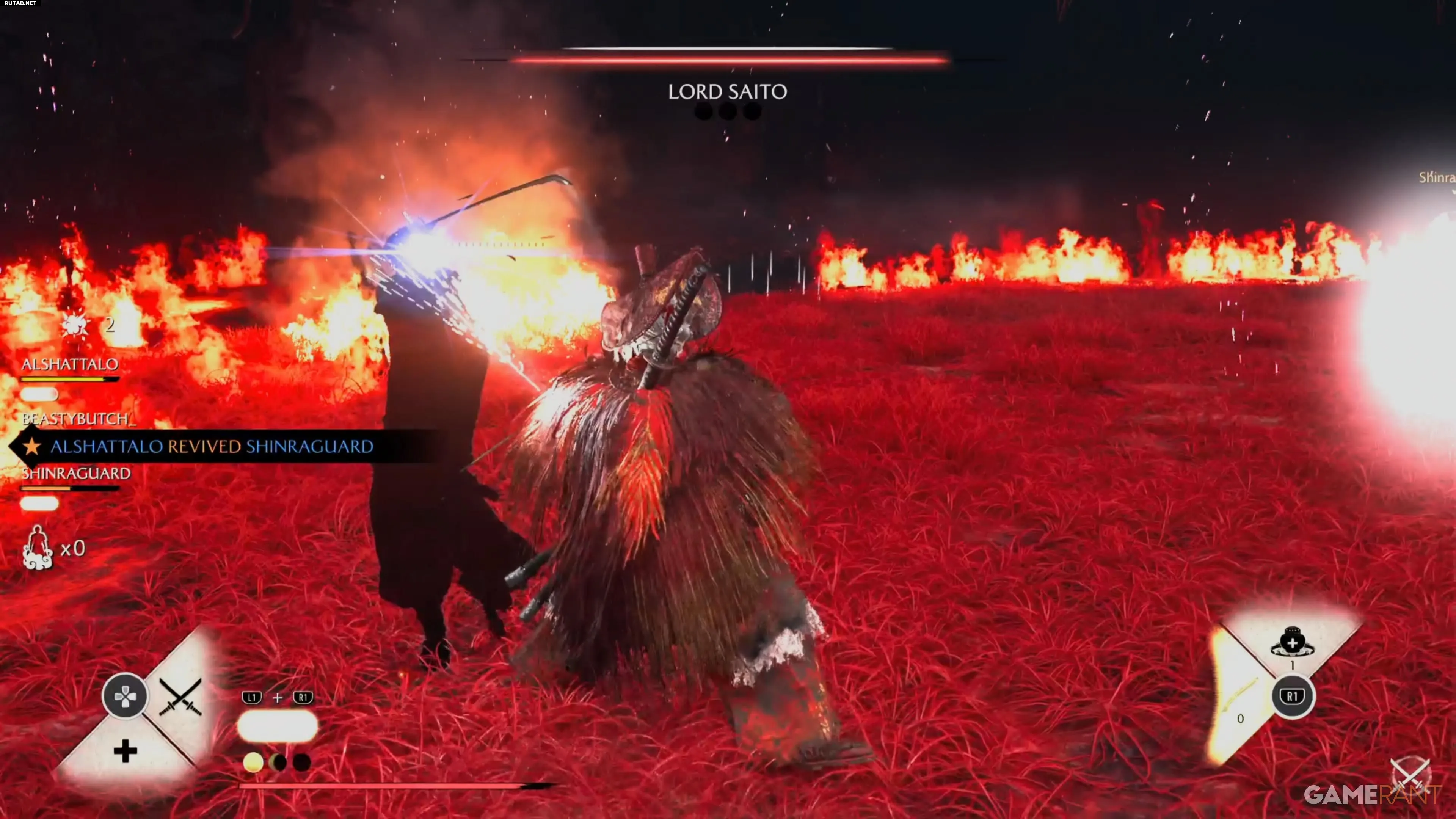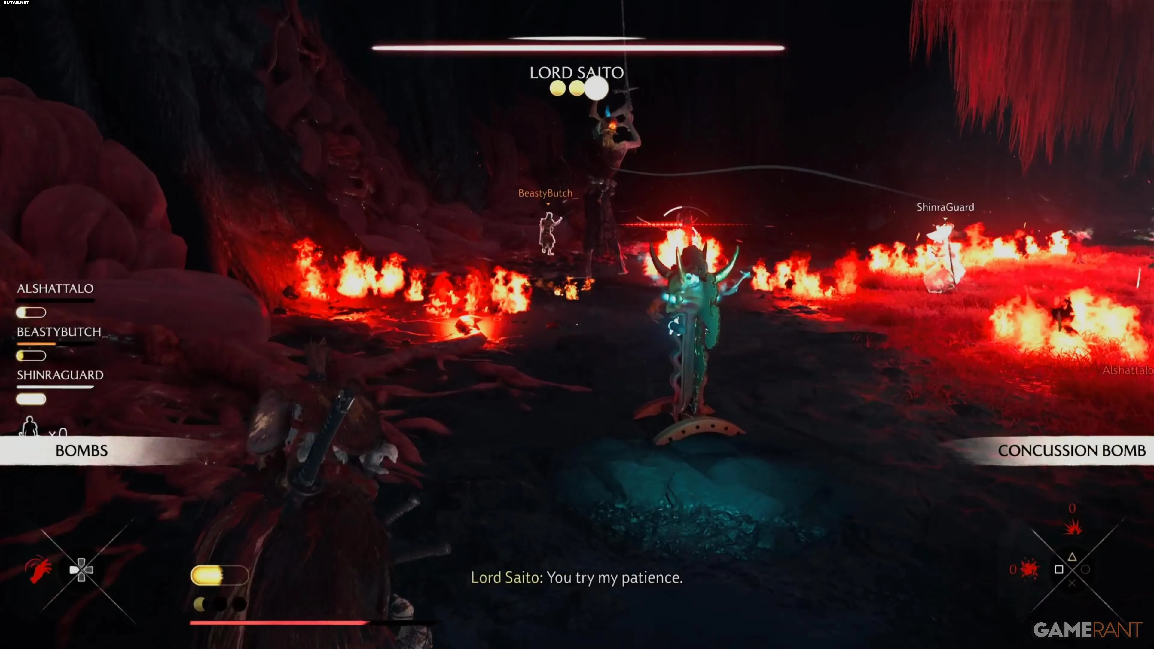 На протяжении всей этой анимации продолжайте атаковать босса, чтобы увеличивать шкалу оглушения и снижать его здоровье. Остальная часть битвы продолжается по схожей схеме: Лорд Сайто призывает слабых врагов, на которых игроки могут сосредоточиться, чтобы восстановить дух для лечения.