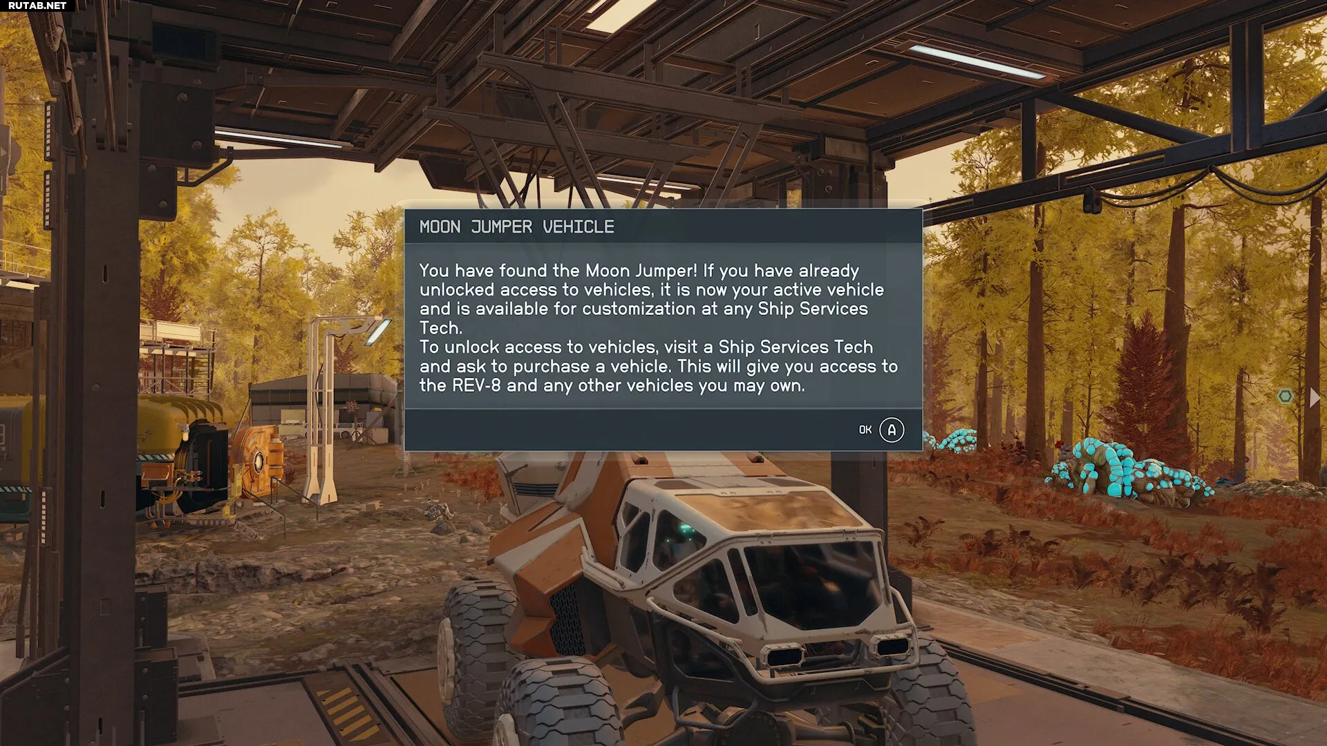 Чтобы получить транспорт, просто сядьте в него. После этого Moon Jumper навсегда добавится в ваш список доступных средств передвижения. Вы сможете бесплатно выбирать и кастомизировать его у любого техника по обслуживанию кораблей в галактике. Для этого не требуется предварительная покупка «Транспортного отсека» или любого другого вездехода.