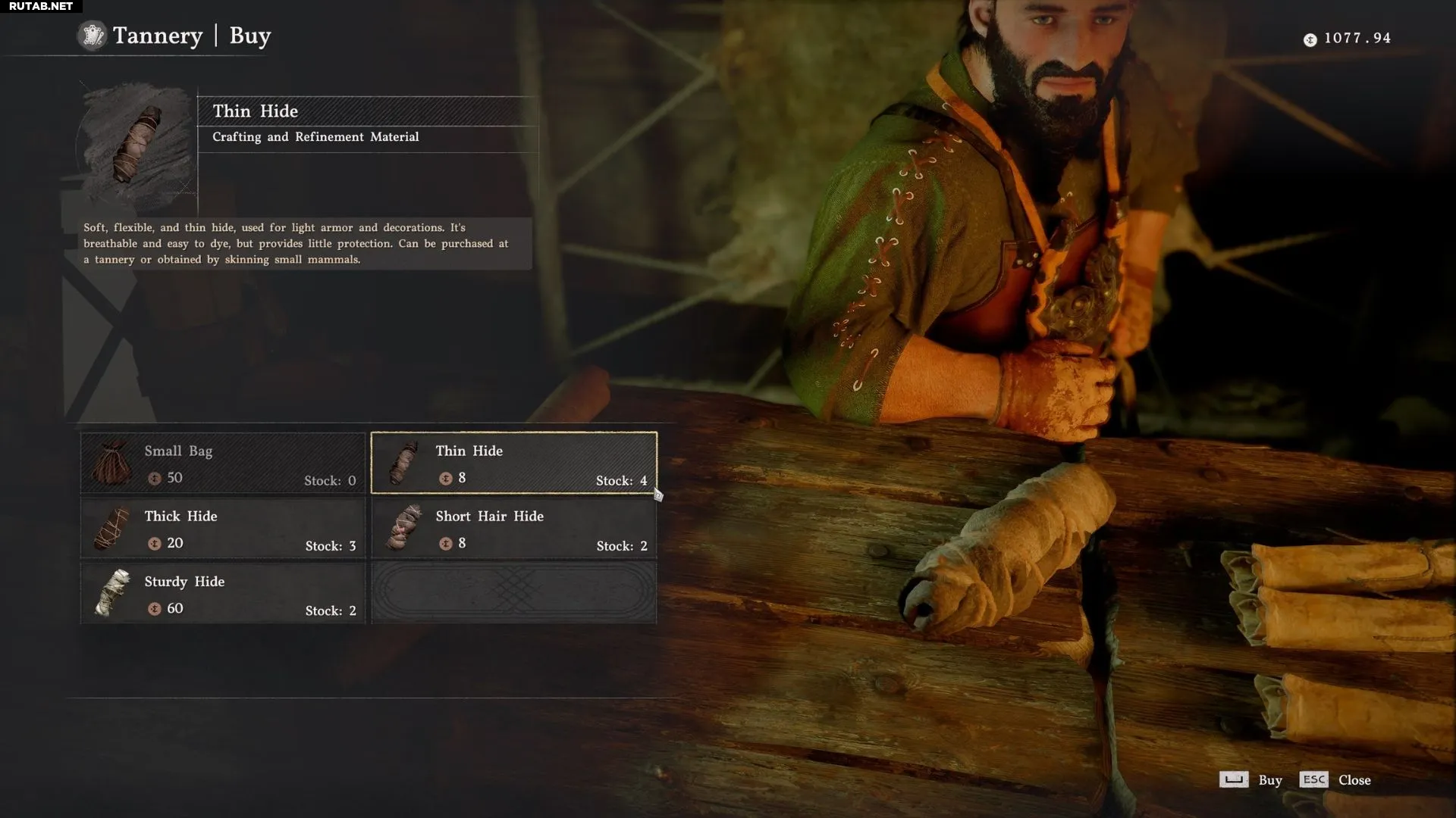 Кроме того, Тонкую шкуру можно купить у любого торговца в Сыромятне за небольшое количество Меди. Запасы у этих продавцов обновляются каждые 5 игровых дней.