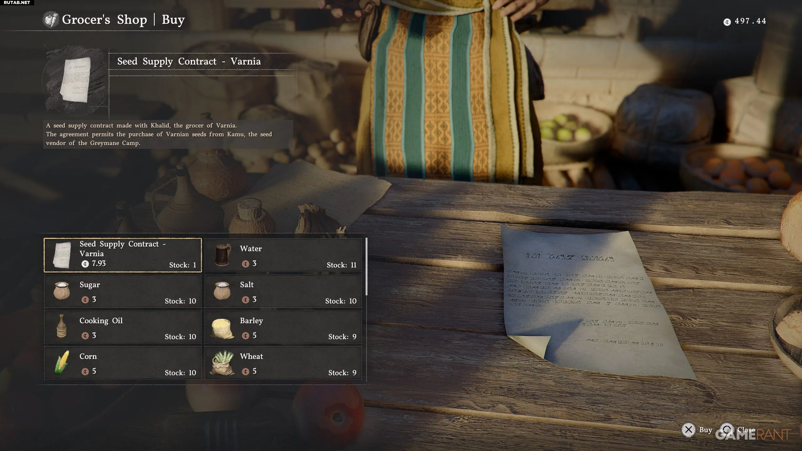 - После этого Халид начнёт продавать «Контракт на поставку семян — Варния». Используйте его из инвентаря.