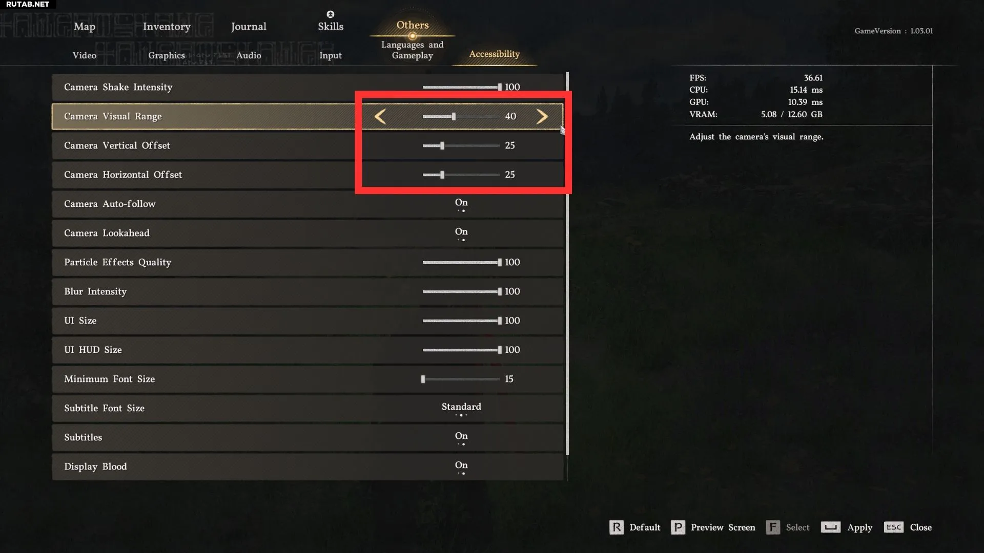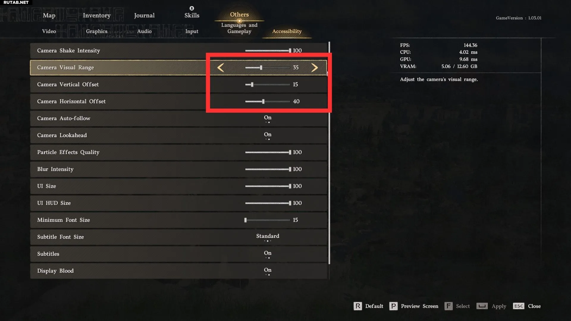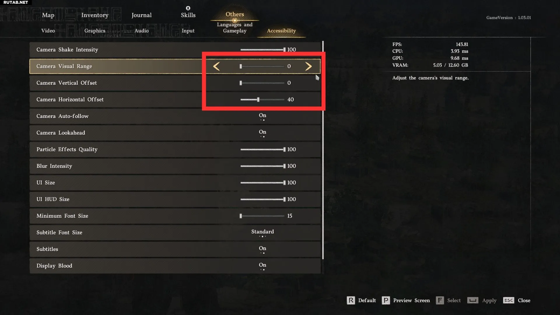 Технически, дальнейшее уменьшение области обзора было бы ещё ближе к западному стилю камеры «через плечо», но это резко сокращает угол обзора до уровней, делающих игру практически неиграбельной. Оставив область обзора на значении 35 и увеличив масштаб вручную, вы получите желаемый вид, не жертвуя полем зрения.