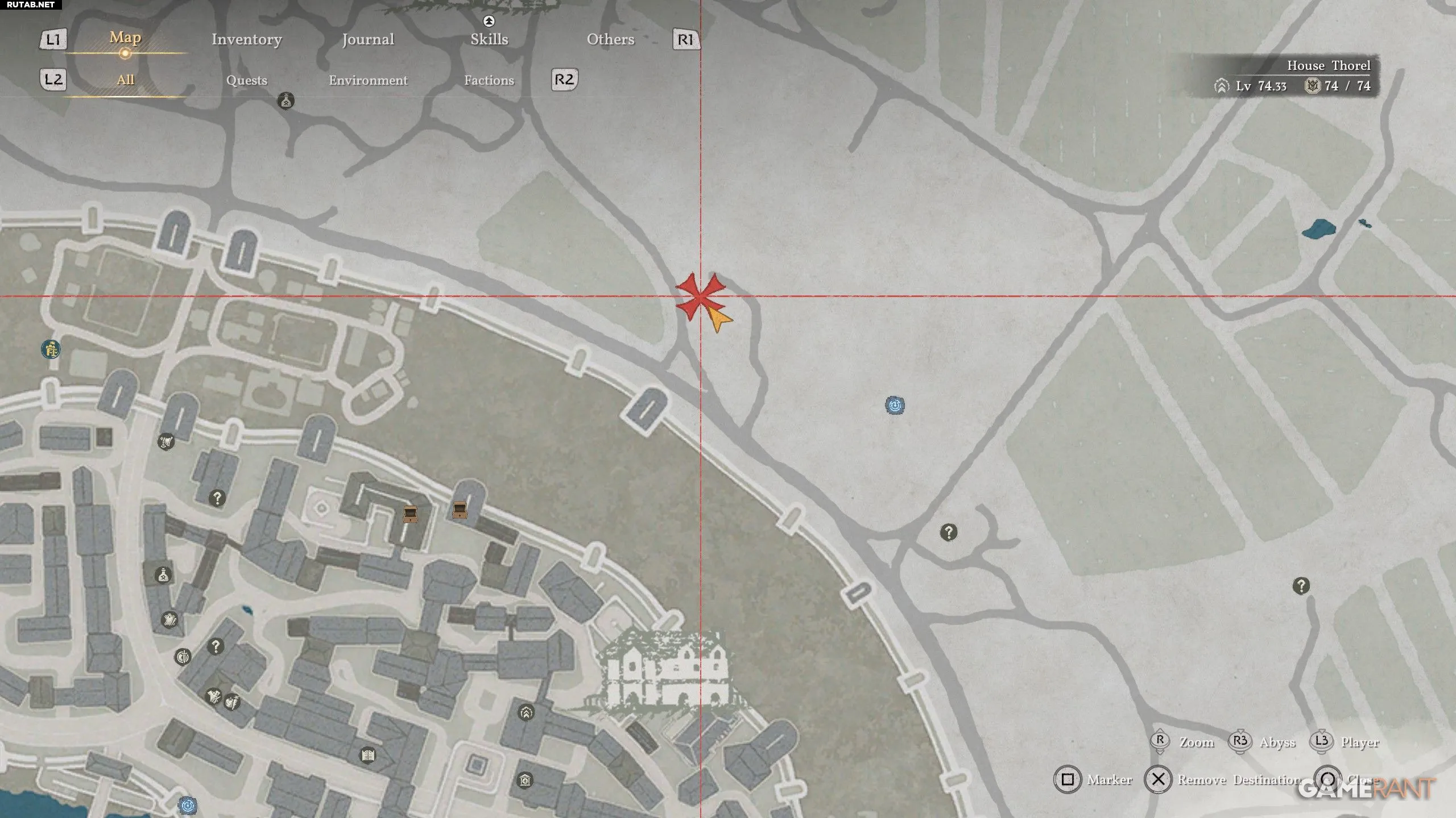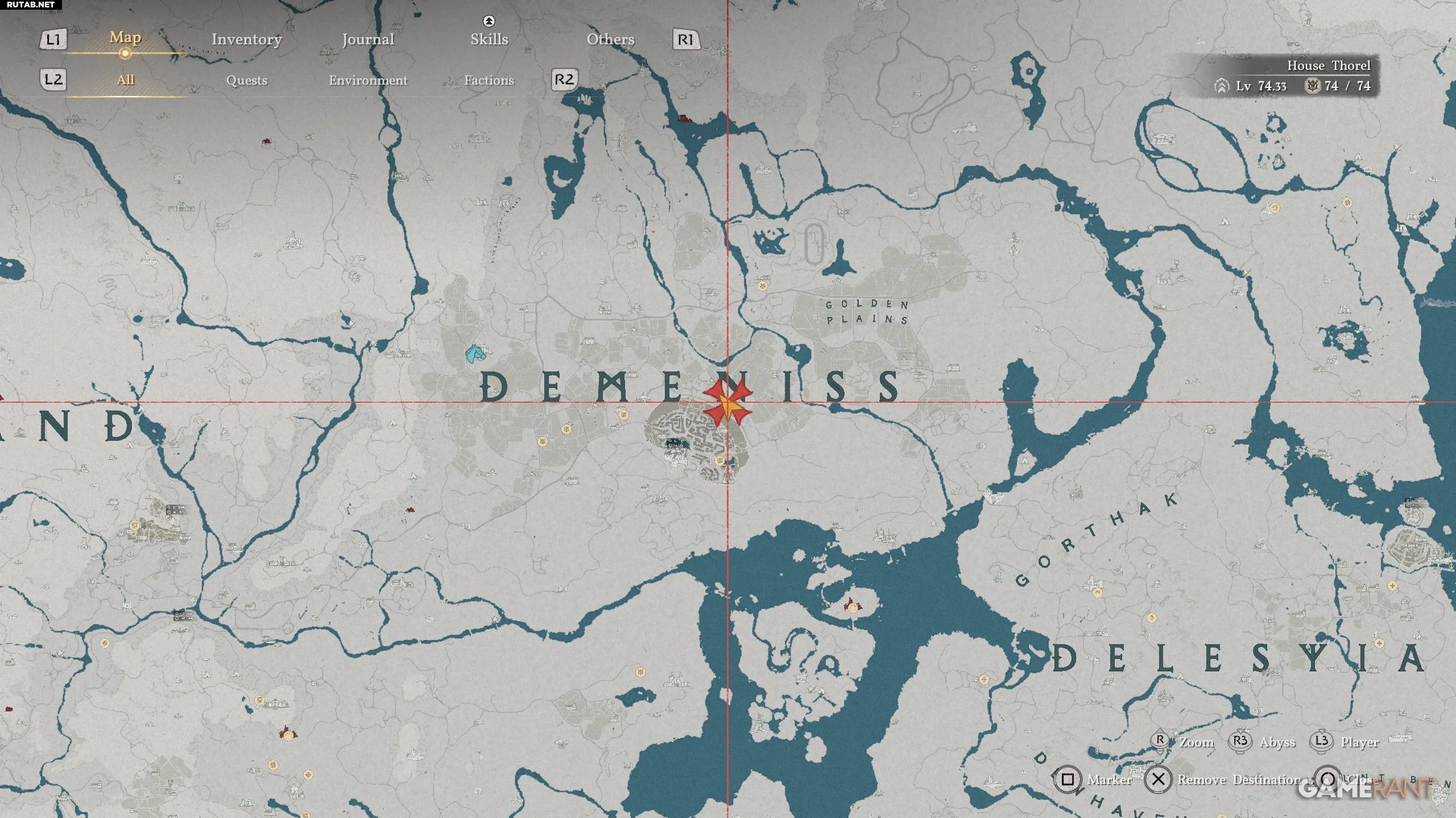 - Лук багрового стража находится в северном районе Города Деменисс, прямо под буквой «N» в названии «Demeniss» на карте. Мы также отметили это место на изображении выше.