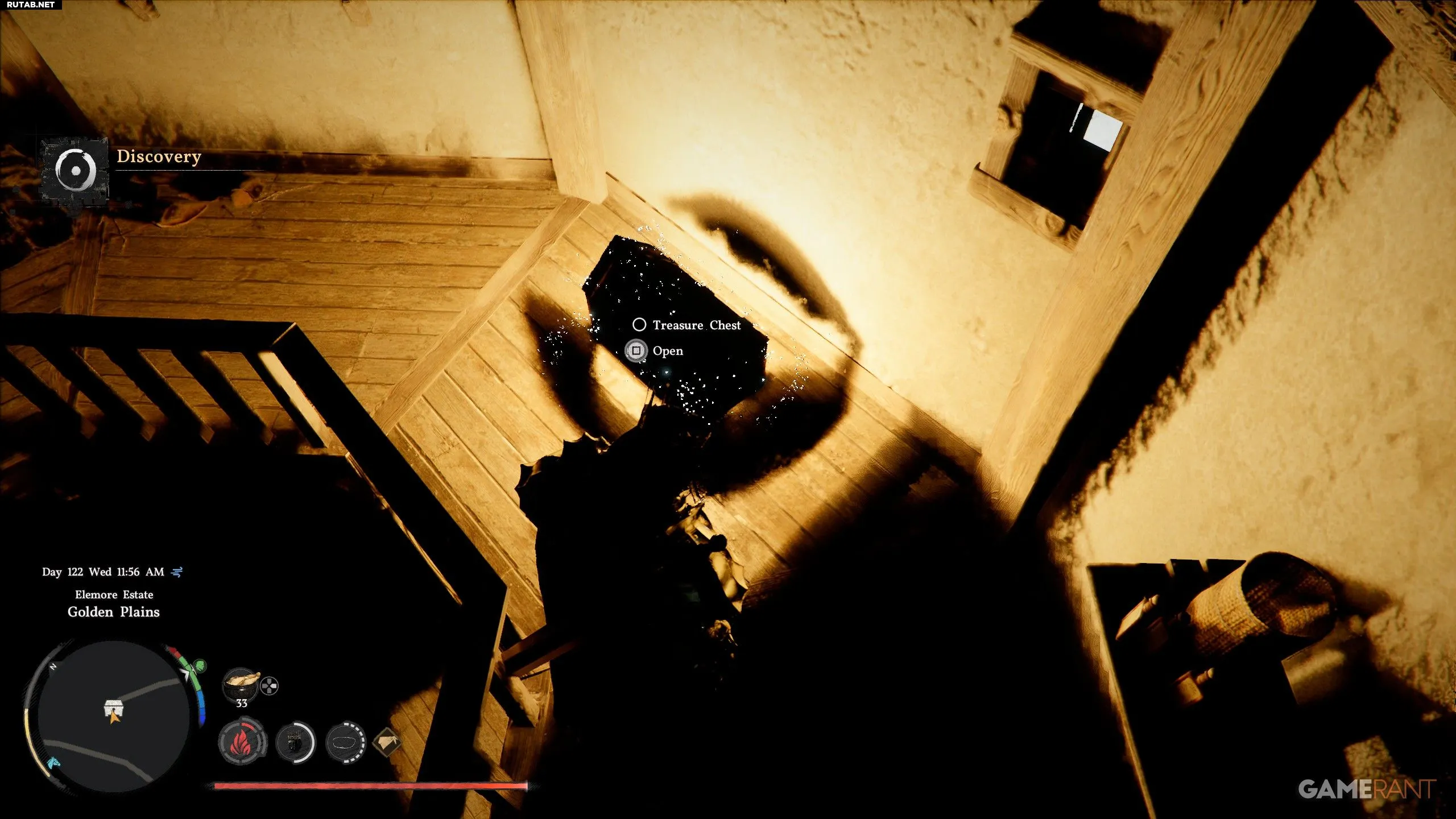 - Войдите через дверь, и внутри вы найдете Сундук с сокровищами, в котором лежит Лук багрового стража. Получить его можно, даже не сражаясь с боссом, которому он принадлежит.
