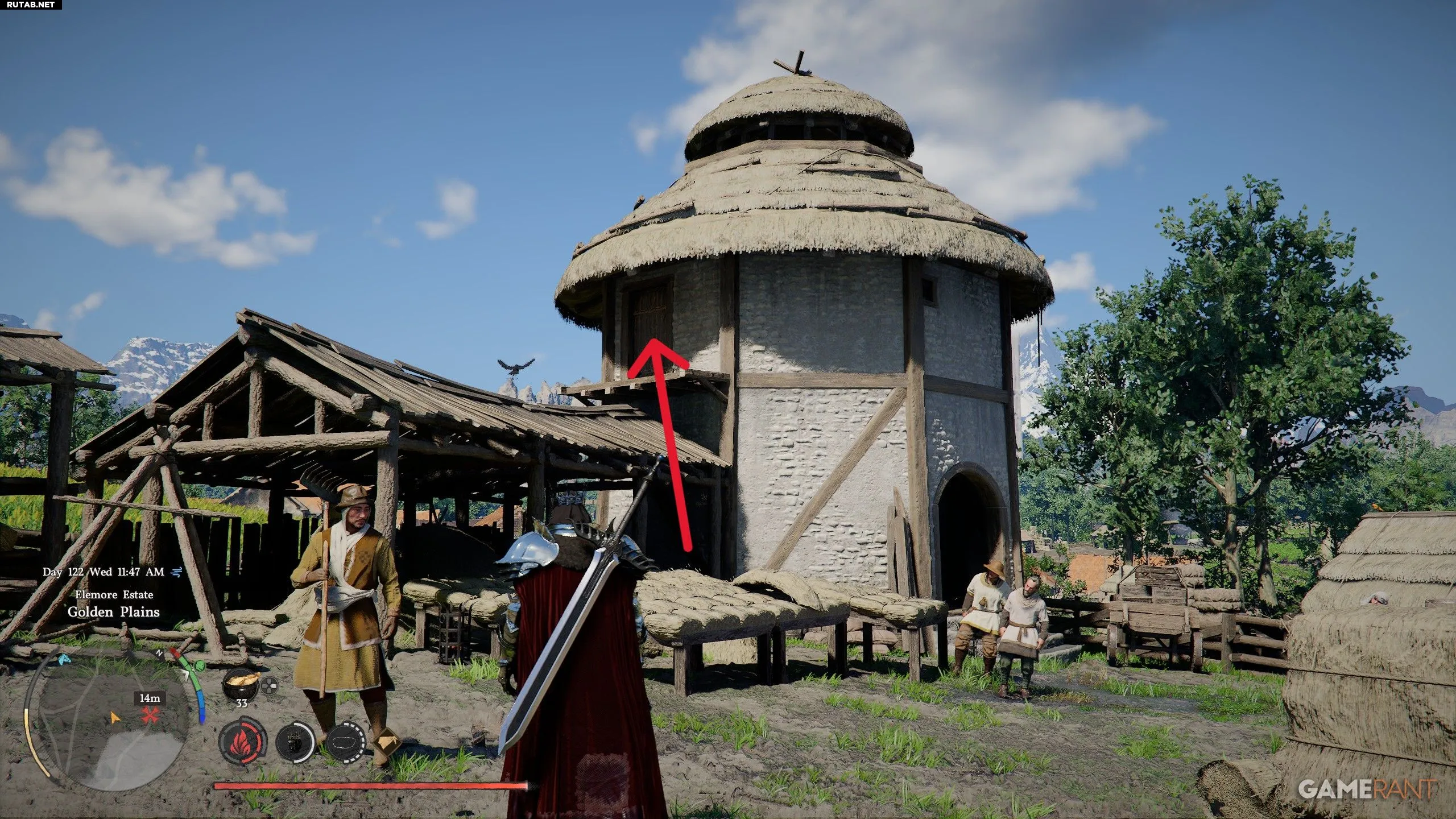 - Здесь вы найдете высокую башню со стогами сена. Поднимитесь на самый верх, чтобы обнаружить дверь.