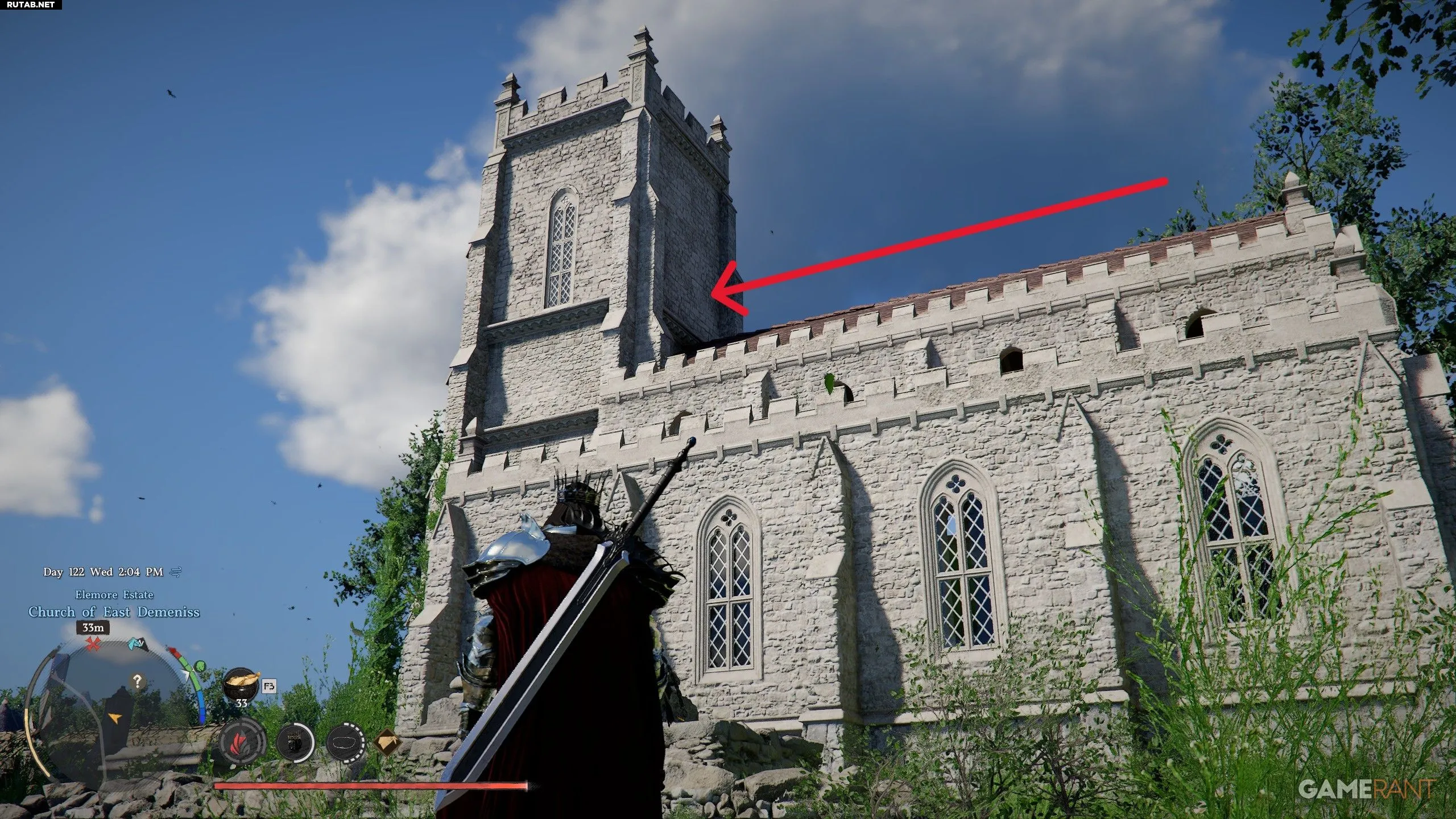 - Церковь Восточного Деменисса расположена к востоку от последней буквы «С» в слове «Деменисс». Вам нужно будет забраться на крышу церкви.