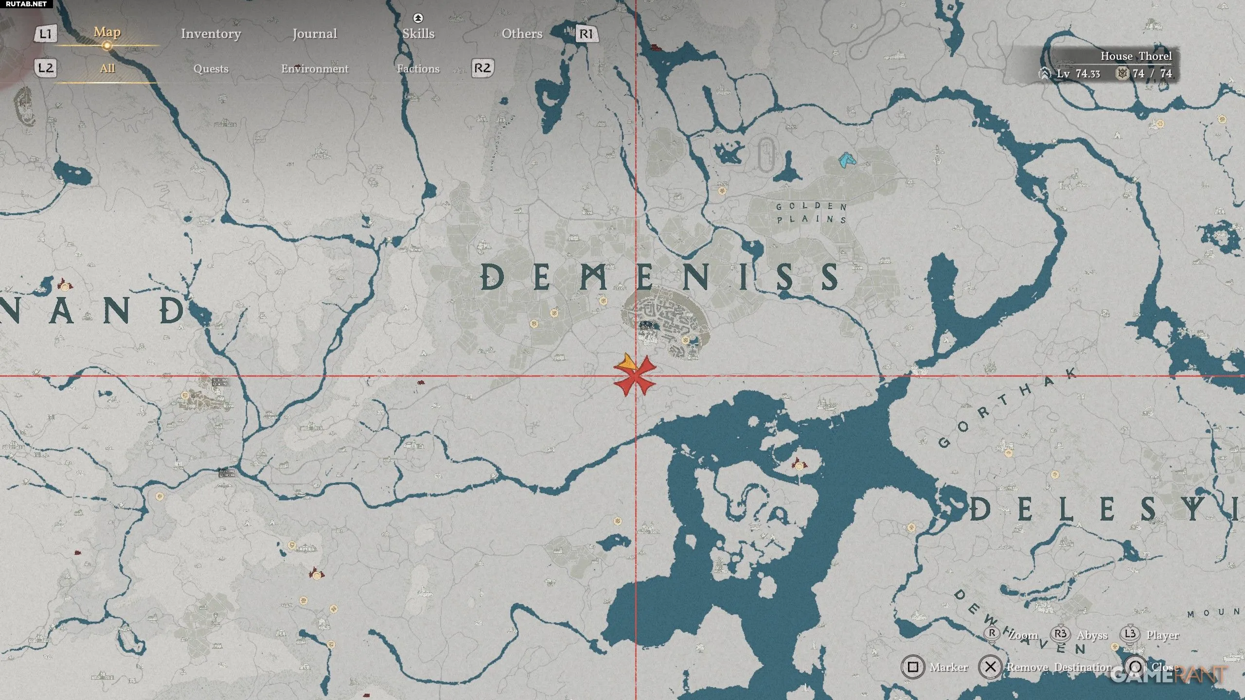 - Кольчужные перчатки алого преследователя находятся на Золотых равнинах, а именно на кончике буквы «Н» в слове «Деменисс» на карте.