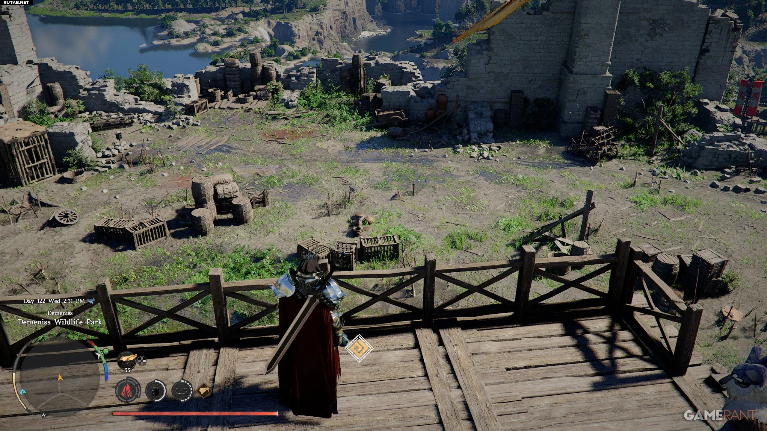 - Когда вы окажетесь в отмеченном месте, посмотрите в сторону мельницы у Белого Камня. С западной стороны вы увидите деревянную платформу и дверь.