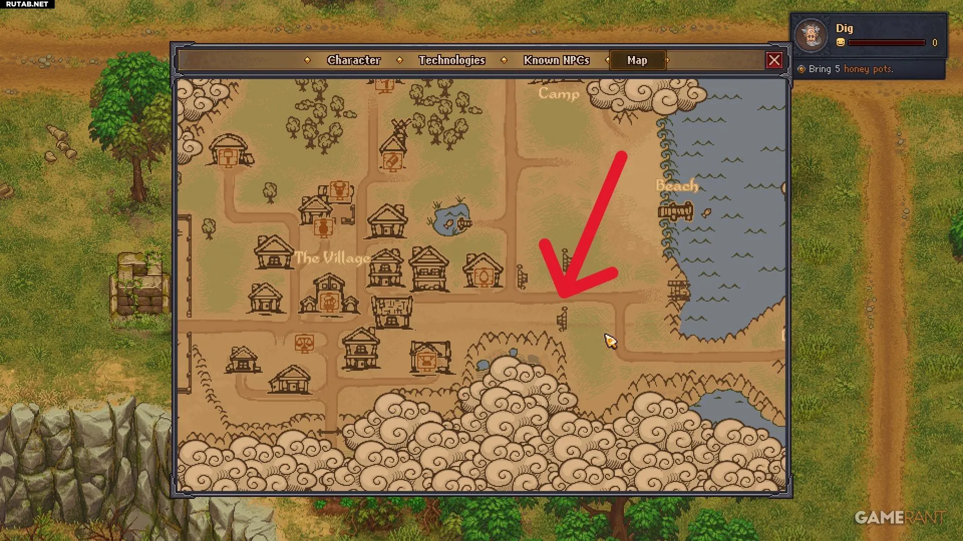 После разговора с Дигом он попросит принести ему 5 горшков мёда в обмен на рецепт торта — один из многих продвинутых рецептов еды в игре.