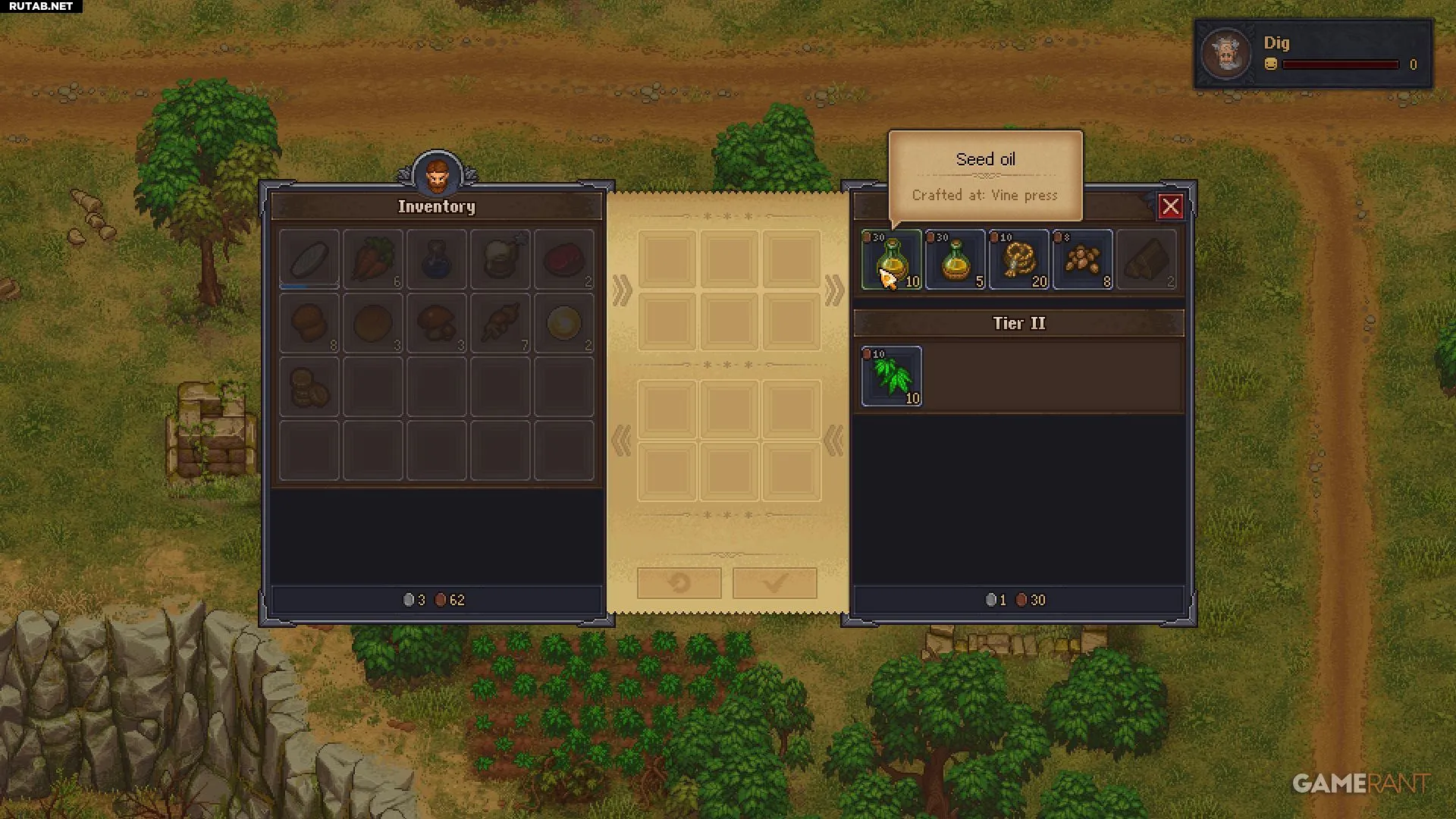 Чтобы получить масло, игрок может создать его на винном прессе, но для этого нужны продвинутые технологии. Гораздо проще купить растительное масло у NPC по имени Диг.