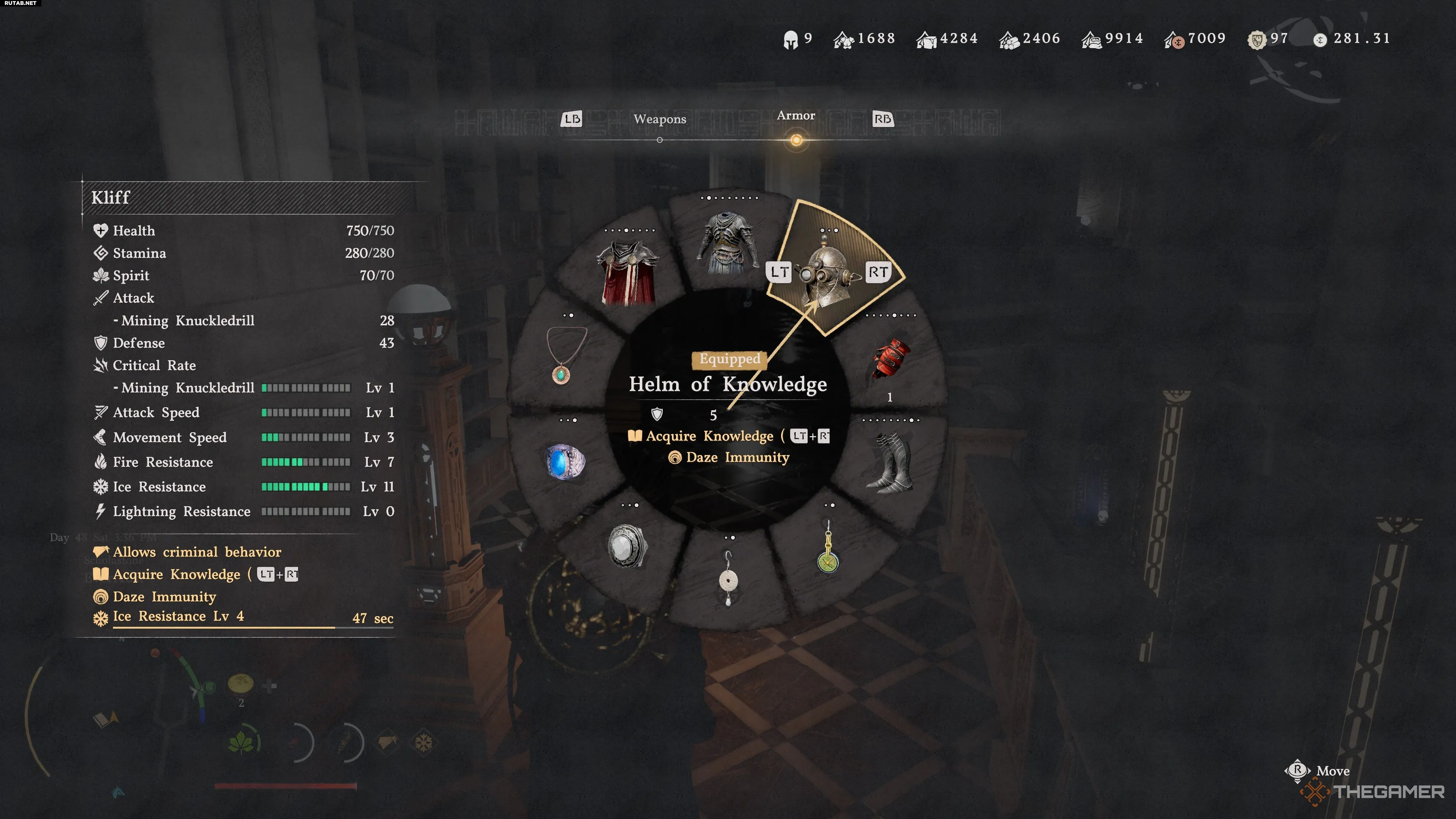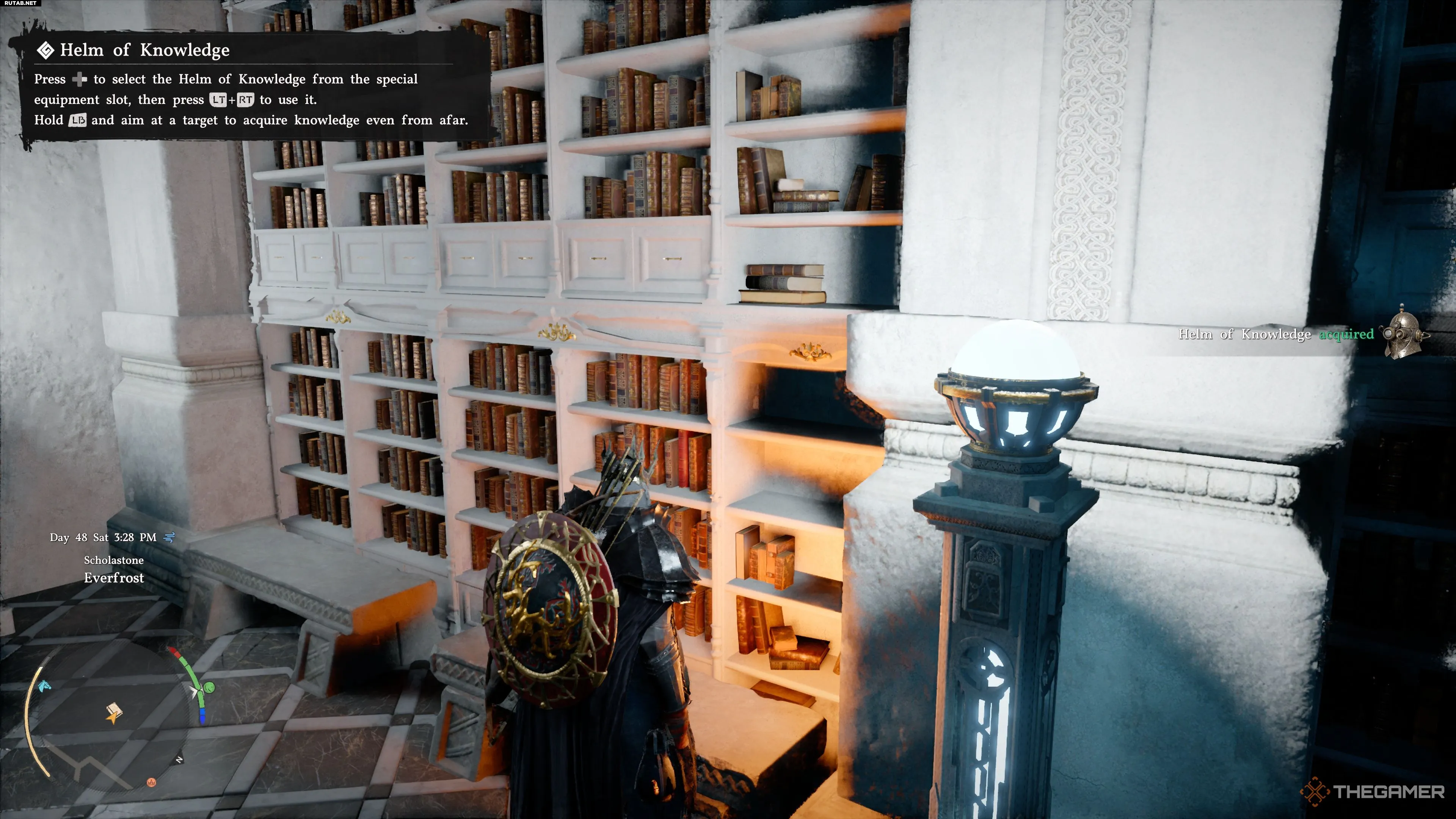 Чтобы найти Шлем знаний, вы можете пройти цепочку заданий «Запретное знание» (Forbidden Knowledge) в 4 главе. В рамках этого квеста вам нужно будет найти и попасть в Институт Схоластоун (Scholastone Institute).