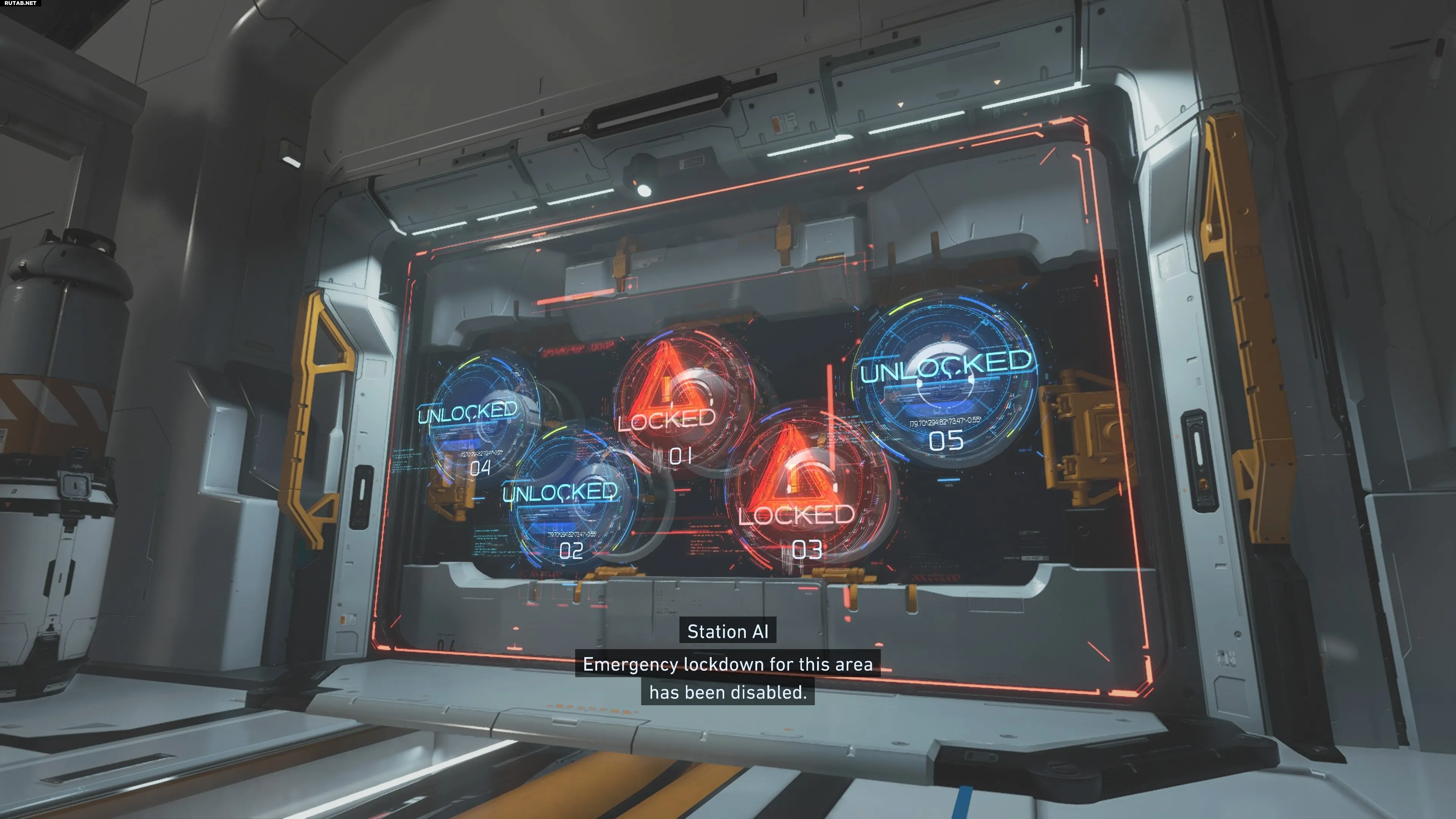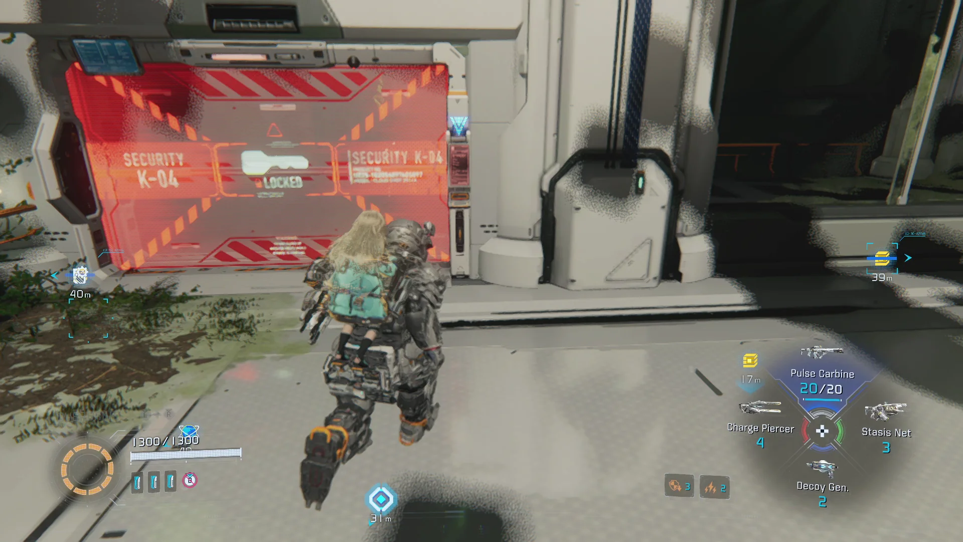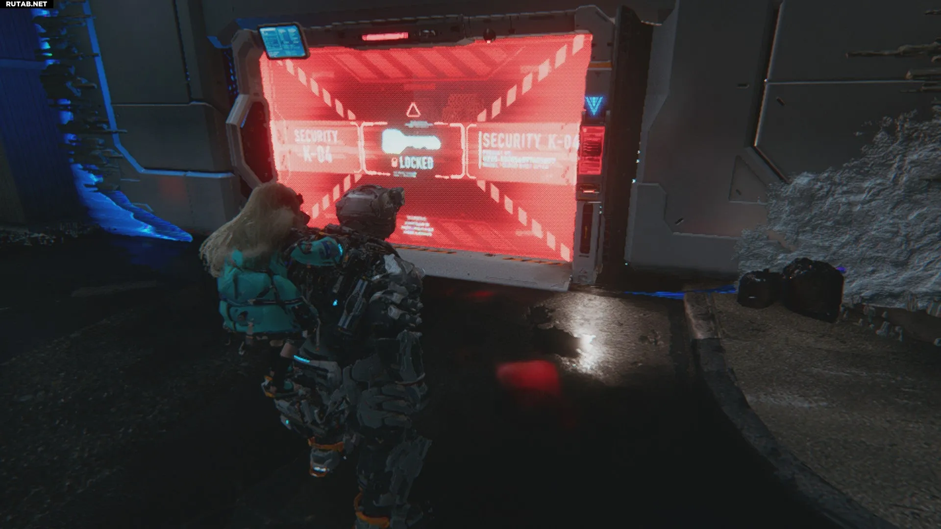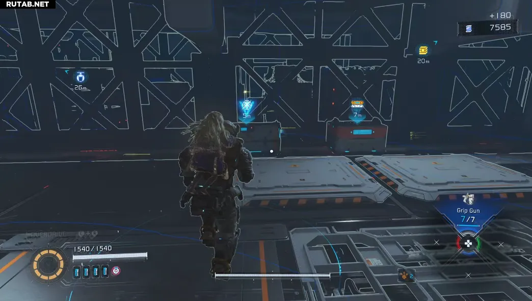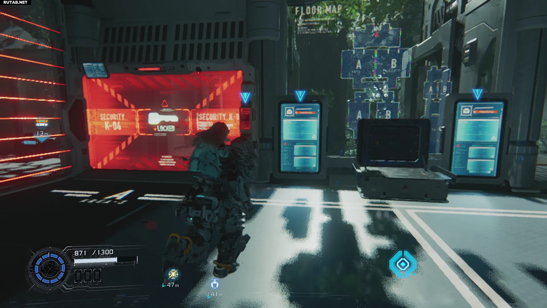 Встаньте на лифт перед вами и поднимитесь наверх. Затем запрыгните на следующую платформу и направляйтесь в дальний левый угол комнаты. Там вы найдёте терминал для взлома упомянутых запечатанных ворот и коридор слева.