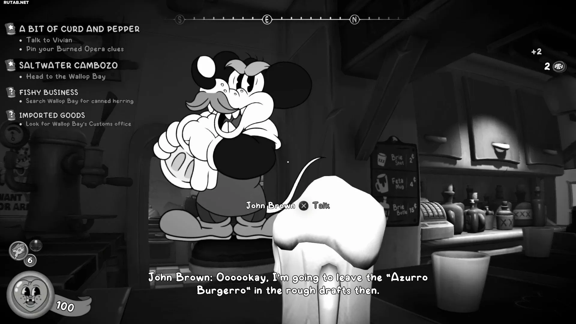 Как только котлета будет готова, продолжайте проходить основное задание «Немного творога и перца» до его завершения. После этого вернитесь в район Детективного агентства и снова поговорите с Джоном Брауном в баре «Маленький и Большой», чтобы завершить задание и получить награду — два жетона.