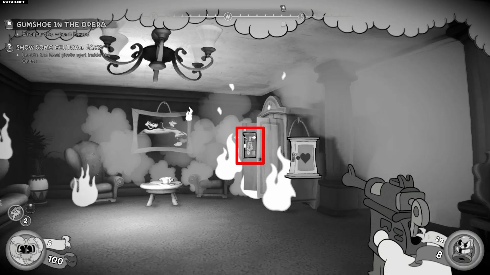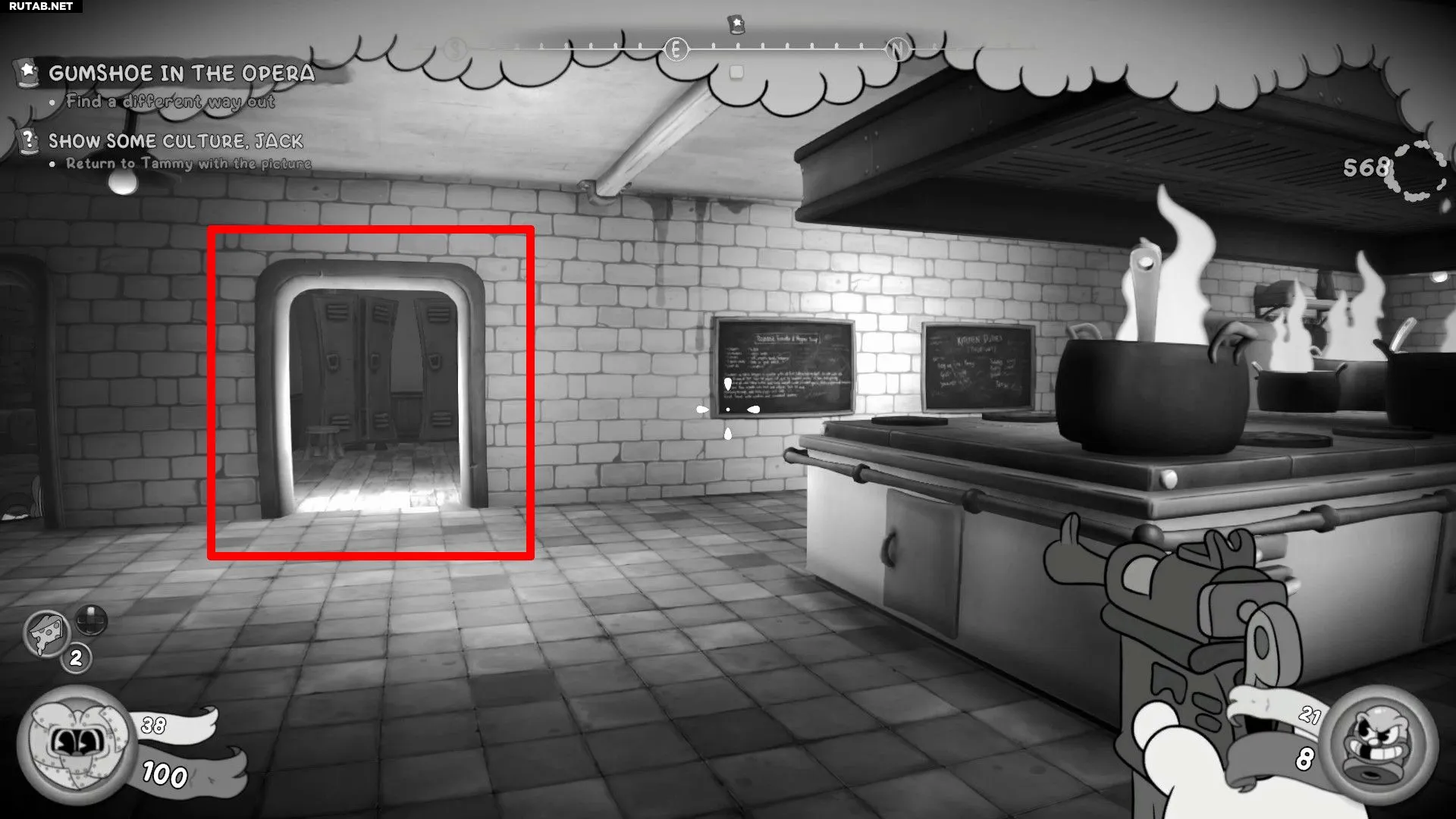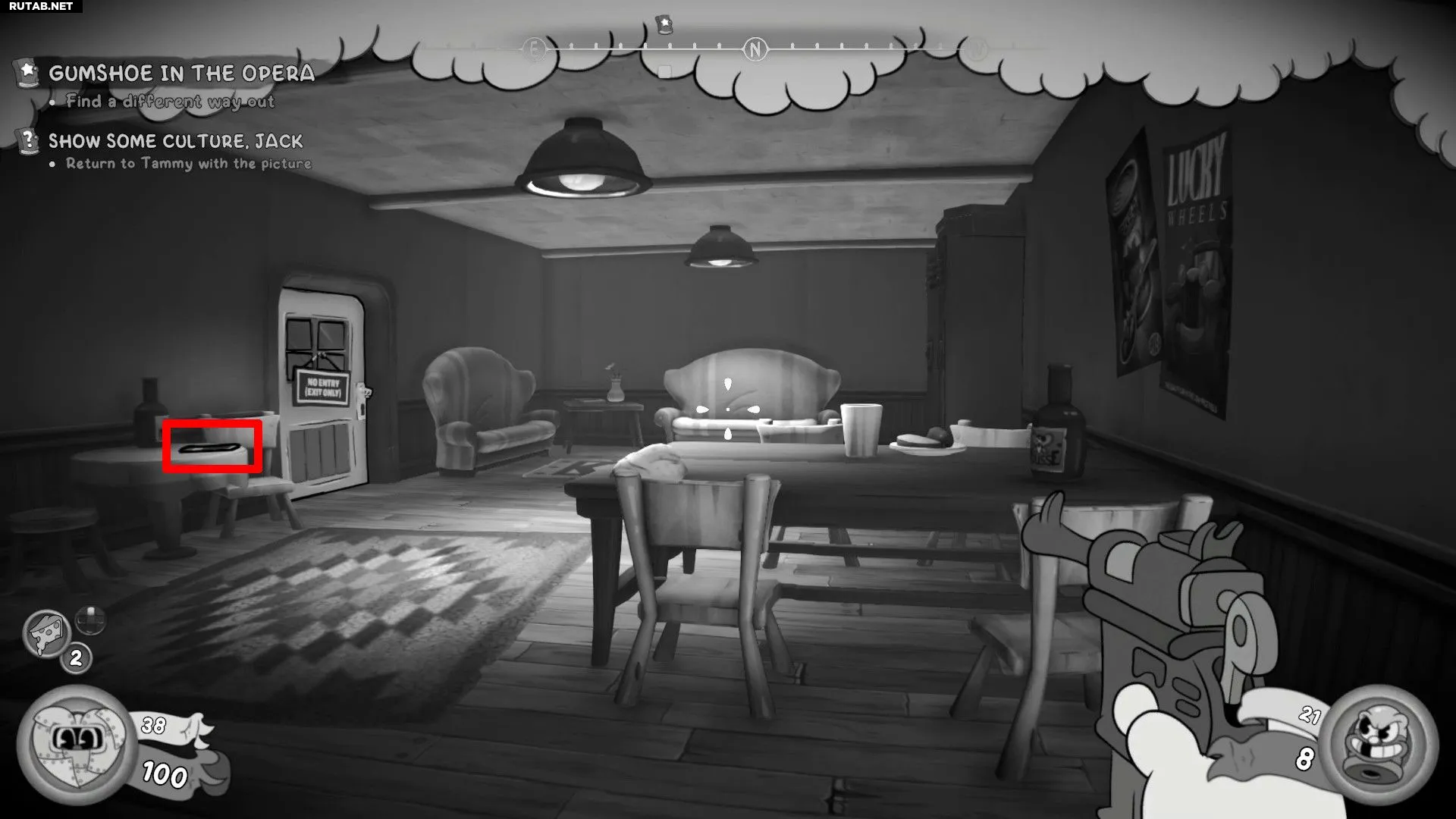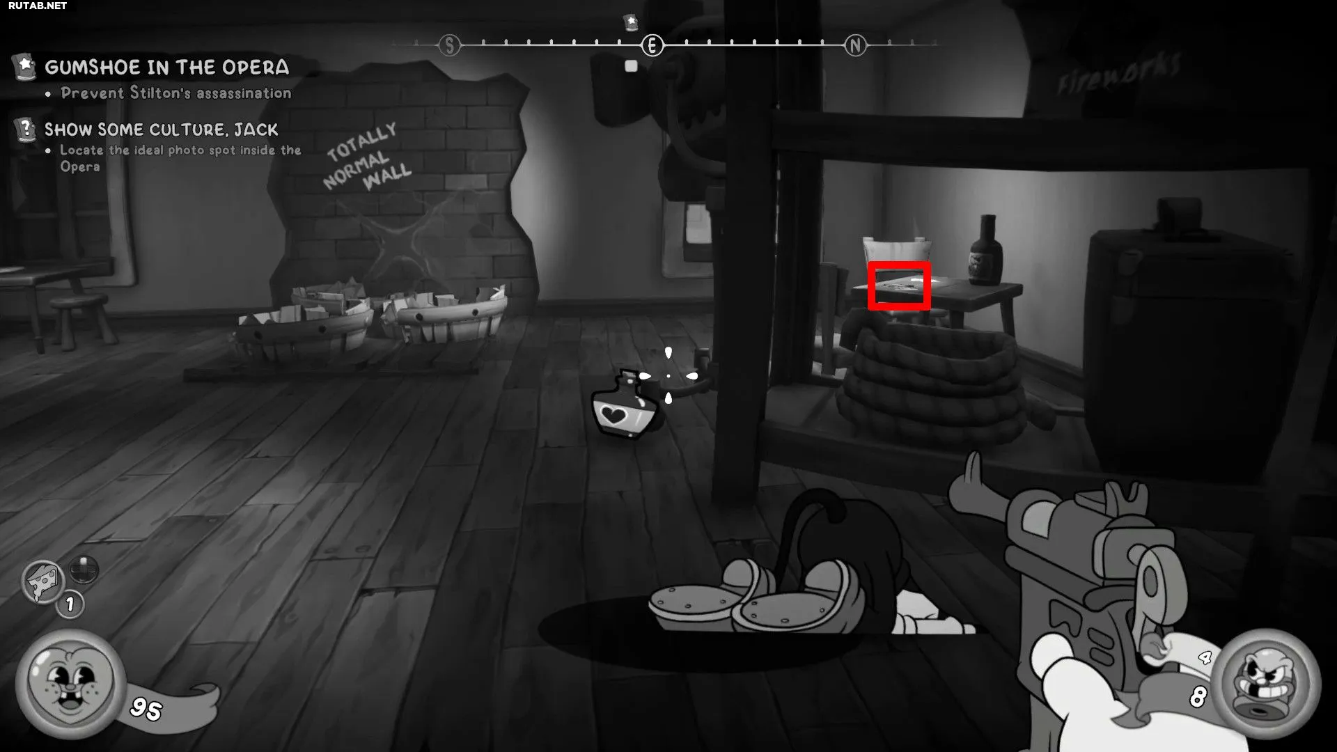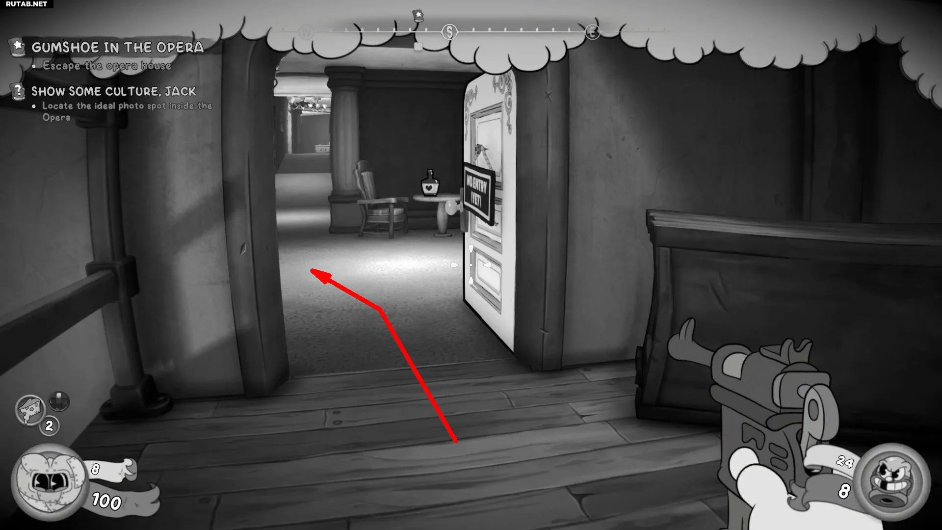 В оперной ложе сразу за обрушившимся коридором можно сделать фотографию, необходимую для задания «Покажи культуру, Джек». Поговорите с Тэмми, когда вернётесь в офис детектива, чтобы завершить побочное задание и получить 100 монет, которые можно потратить в магазине «Суп и орехи» рядом с офисом.