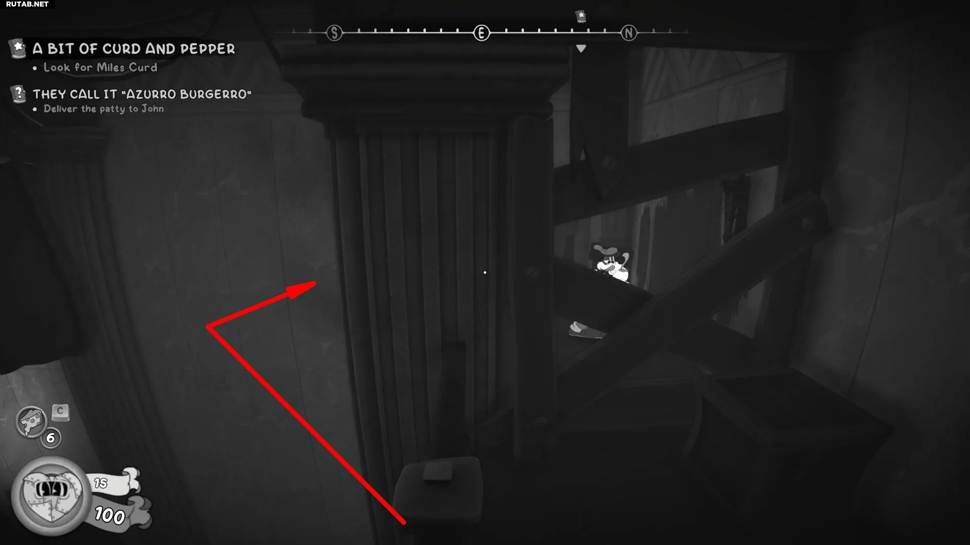 Пройдите в дверь рядом с комиксом и следуйте по пути, пока он не будет перегорожен деревянными досками. Используйте двойной прыжок, чтобы обойти это препятствие и забрать бейсбольную карточку Джейка Соус-Пэна.