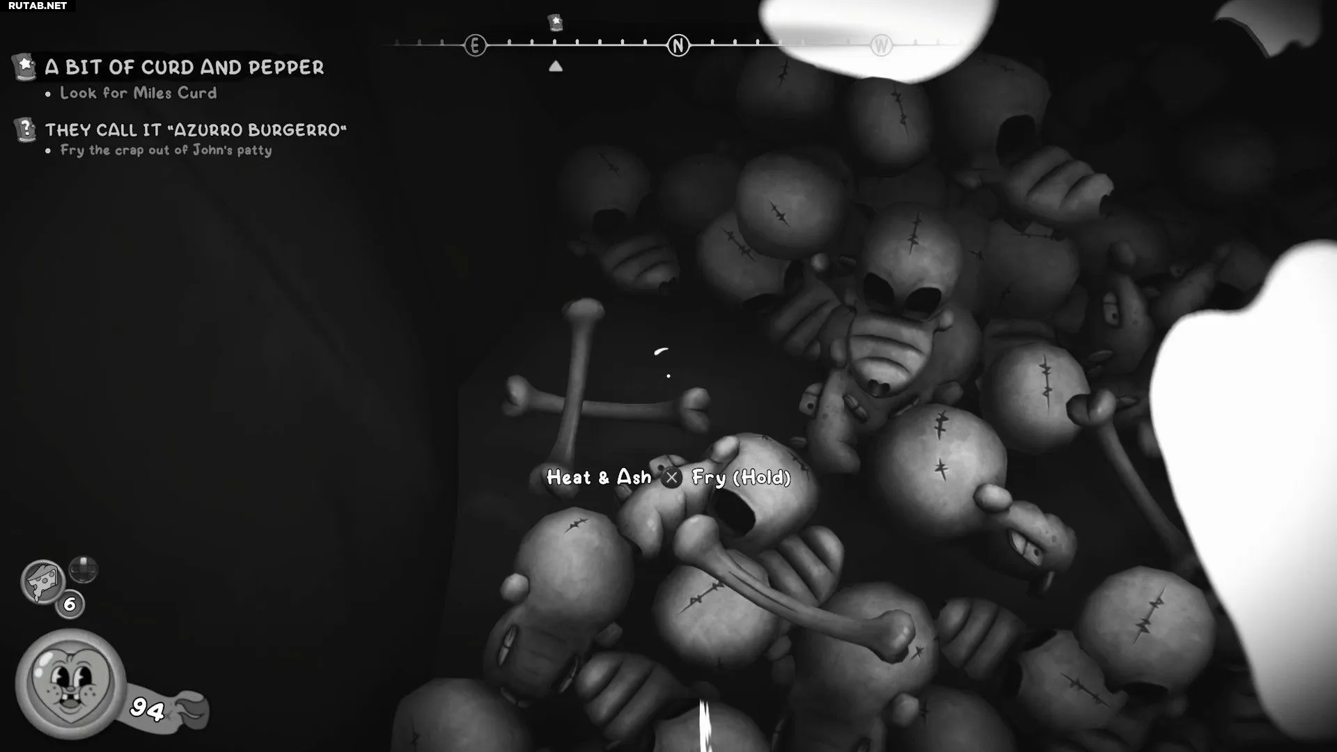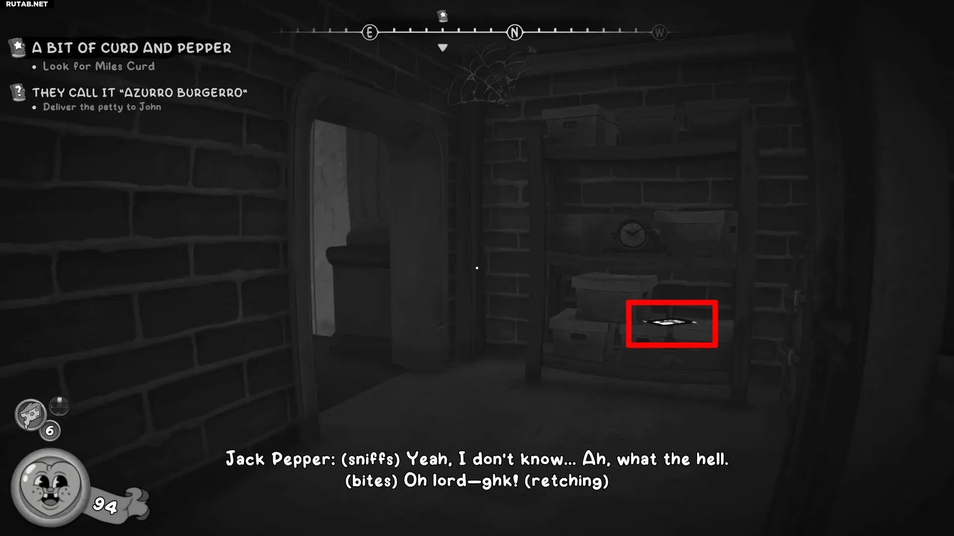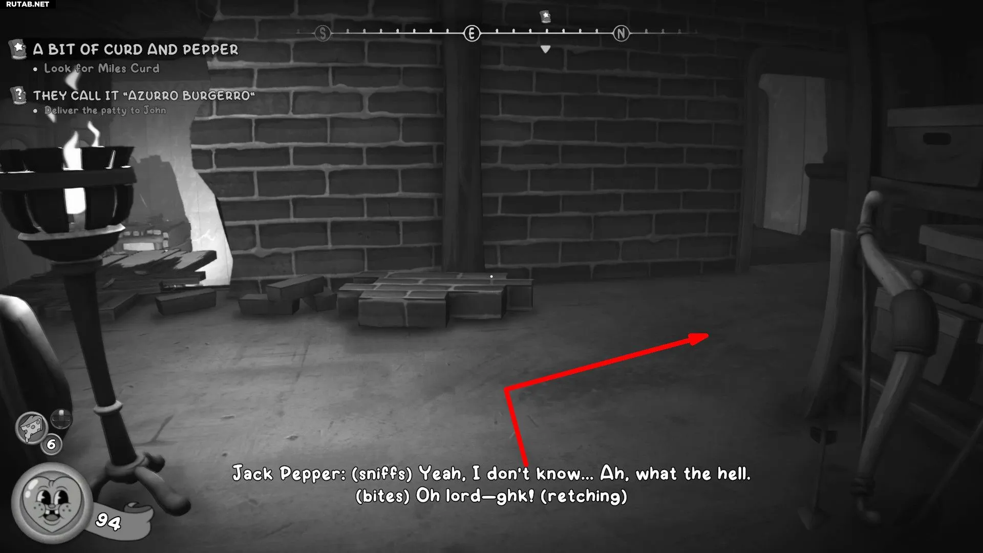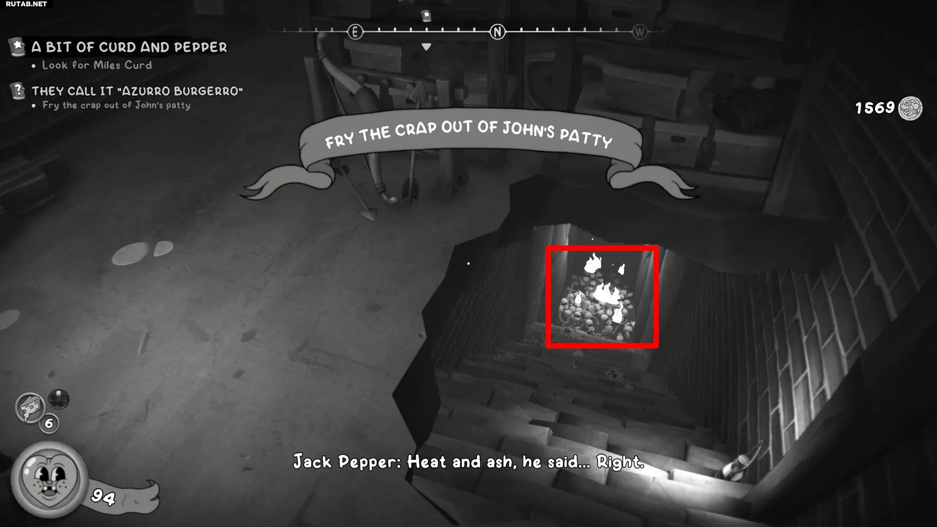 - Спуститесь по лестнице и взаимодействуйте с ямой с костями, чтобы поджарить котлету для Джона.