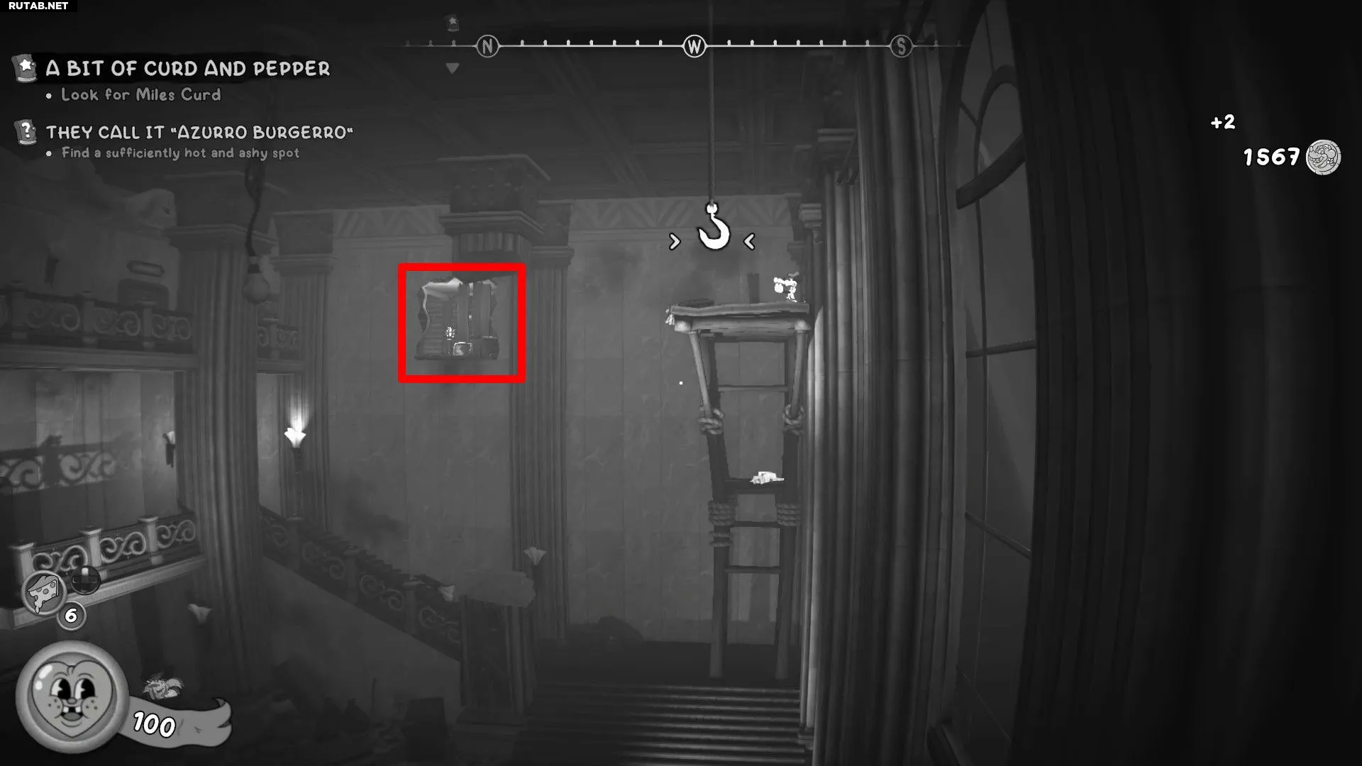 - Используйте «Хватательный хвост» (R1/RB), чтобы зацепиться за крюк и перемахнуть на платформу.