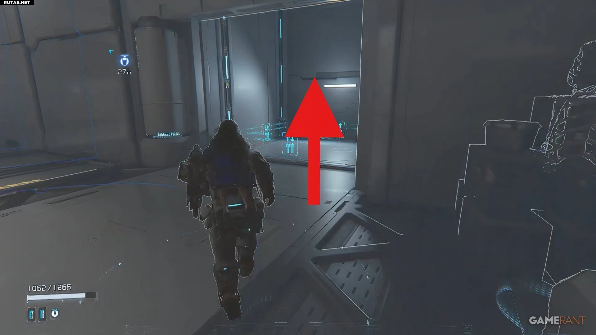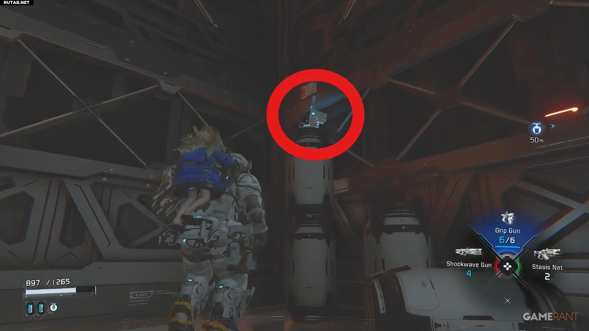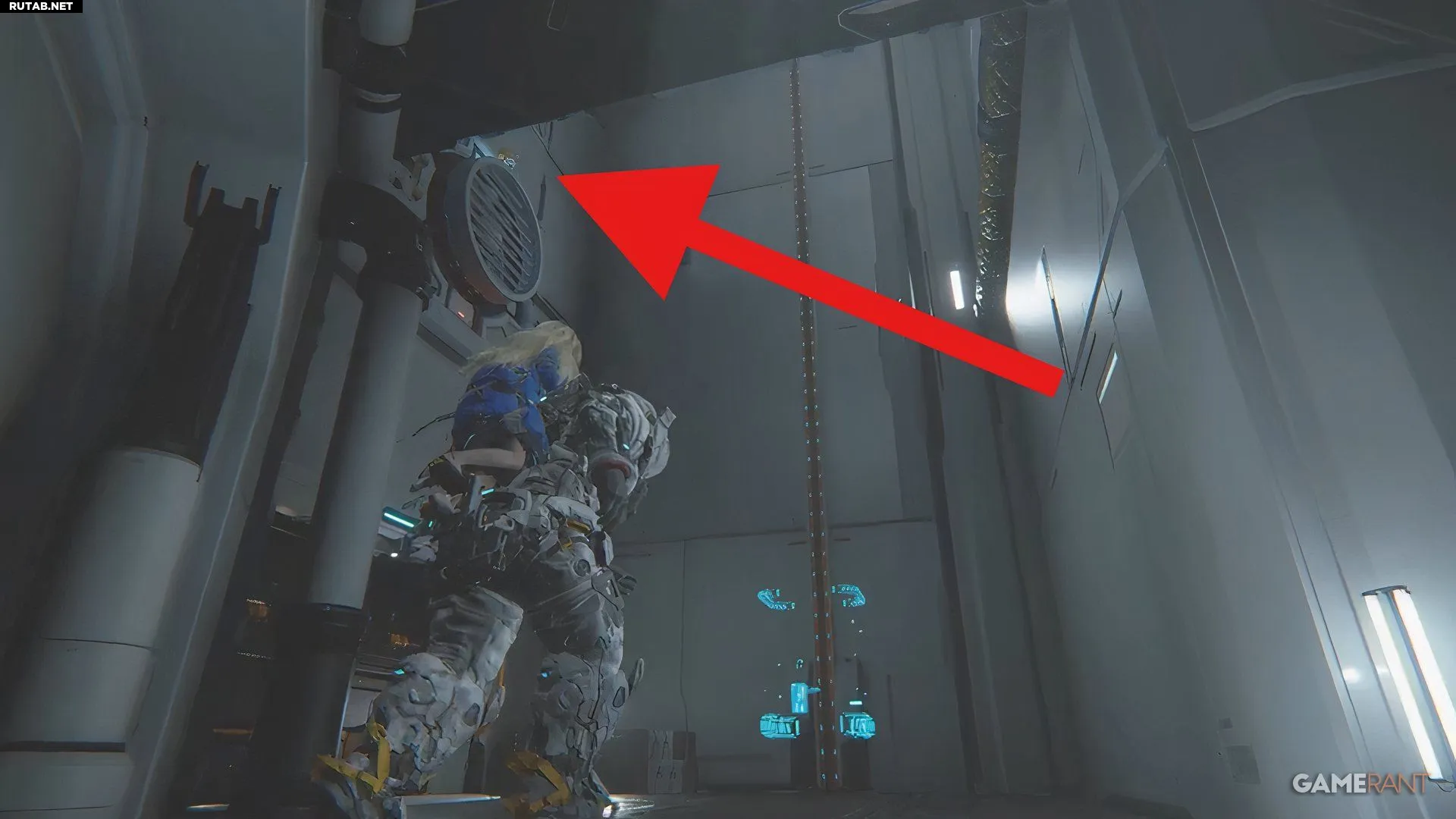 Прямо перед входом в большой лифт, который ведет к битве с боссом, можно использовать подъемную машину, чтобы забраться в скрытую зону. Однако, прежде чем подняться, посмотрите наверх на один из вентиляционных коробов. Последняя мини-кабина будет стоять прямо на нем.