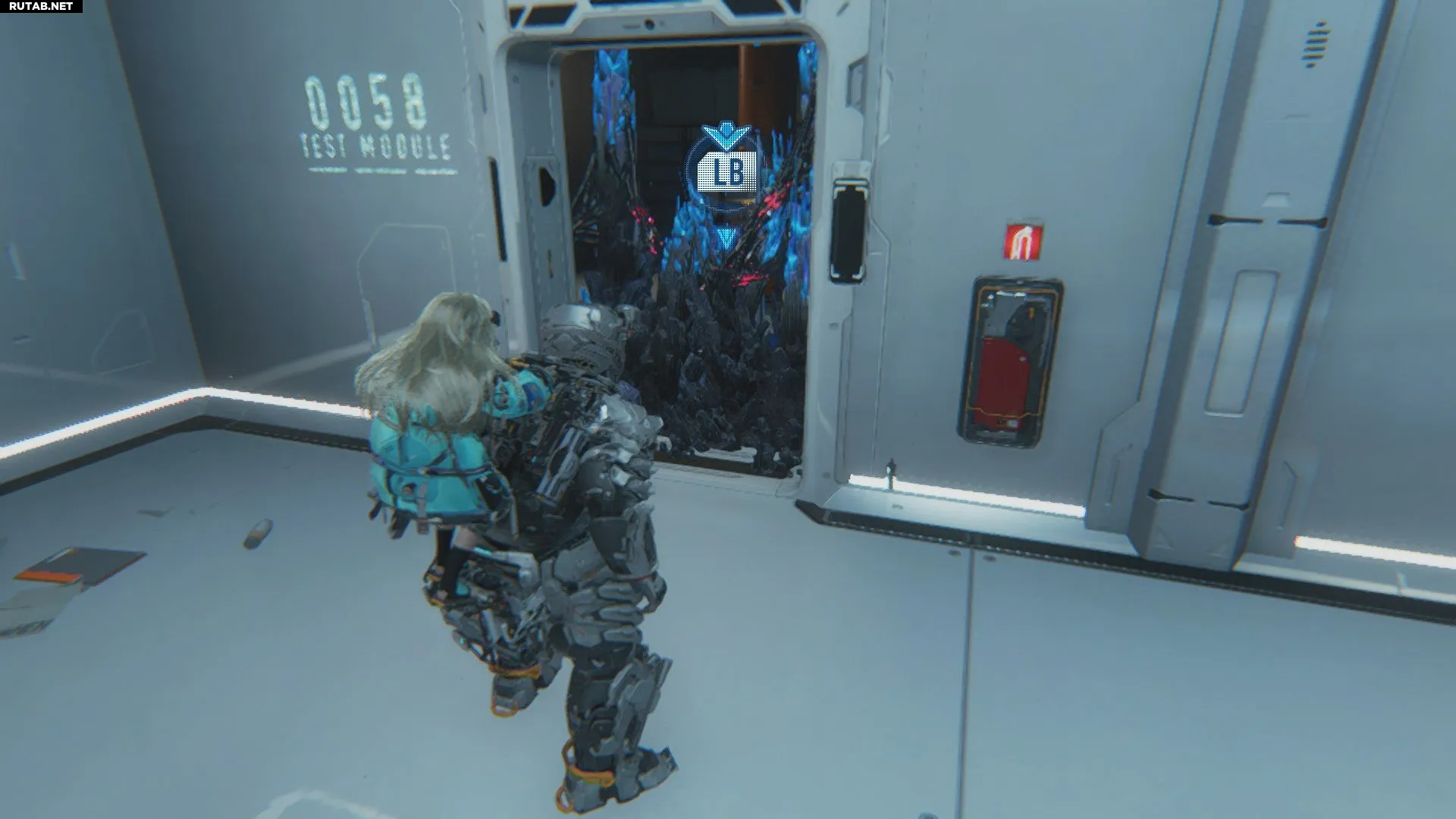 Получив Стиратель, выйдите из трамвая на остановке «Платформа электростанции» (Блок 01), пройдите в дверь справа и следуйте по пути направо. Вы упретесь в проход, заблокированный синим лунафиламентом. Очистите его инструментом и зайдите в следующую комнату, чтобы забрать Расширитель.