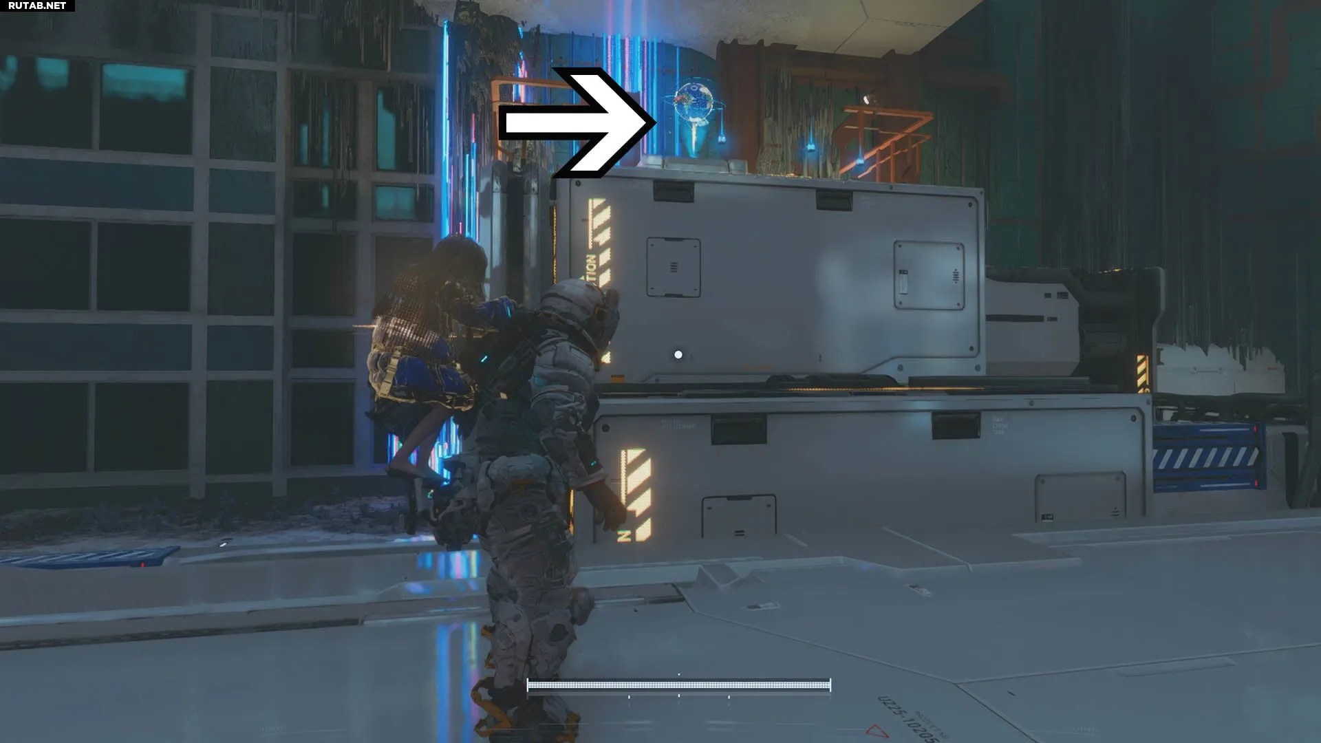 Впервые вы увидите эту голограмму, следуя по пути после взлома первого узла в Блоке 02. Продолжайте идти по основной тропе, и вскоре вы найдете мяч за грудой ящиков.