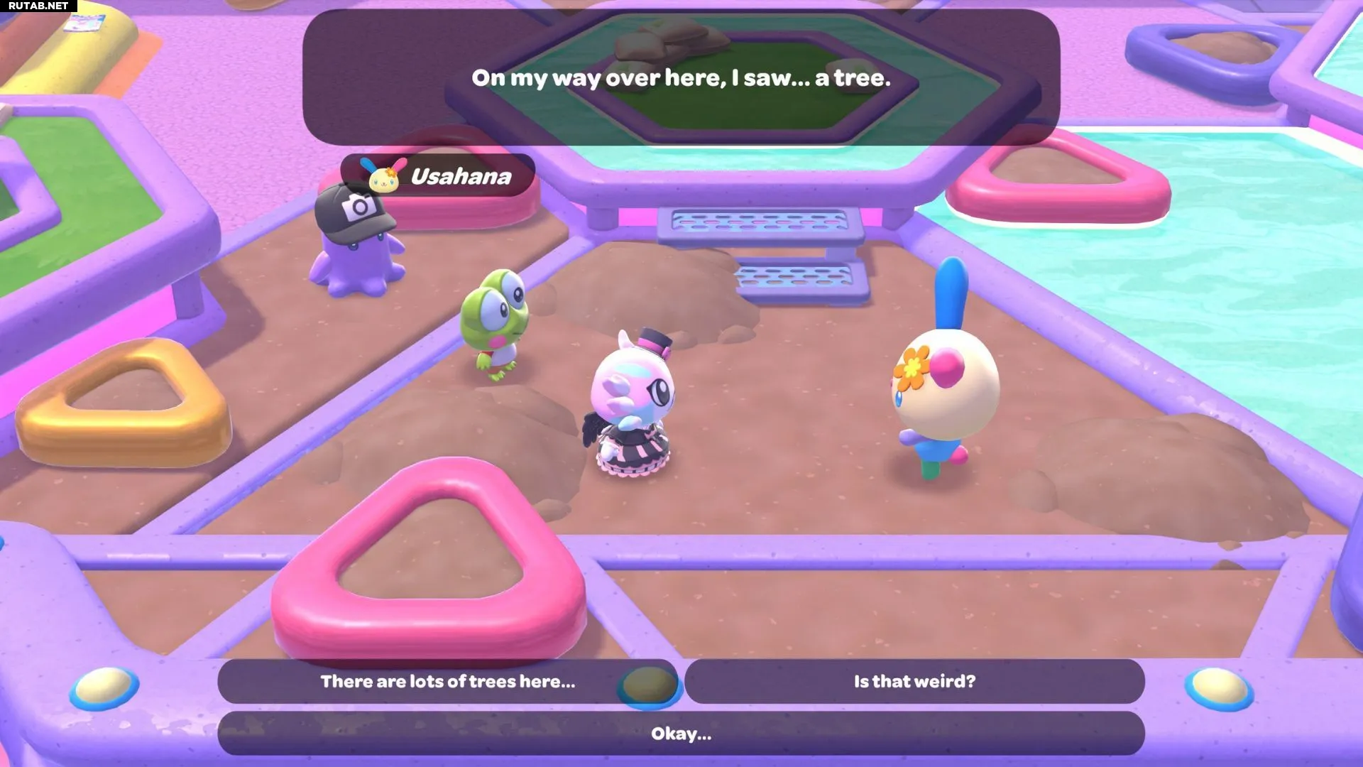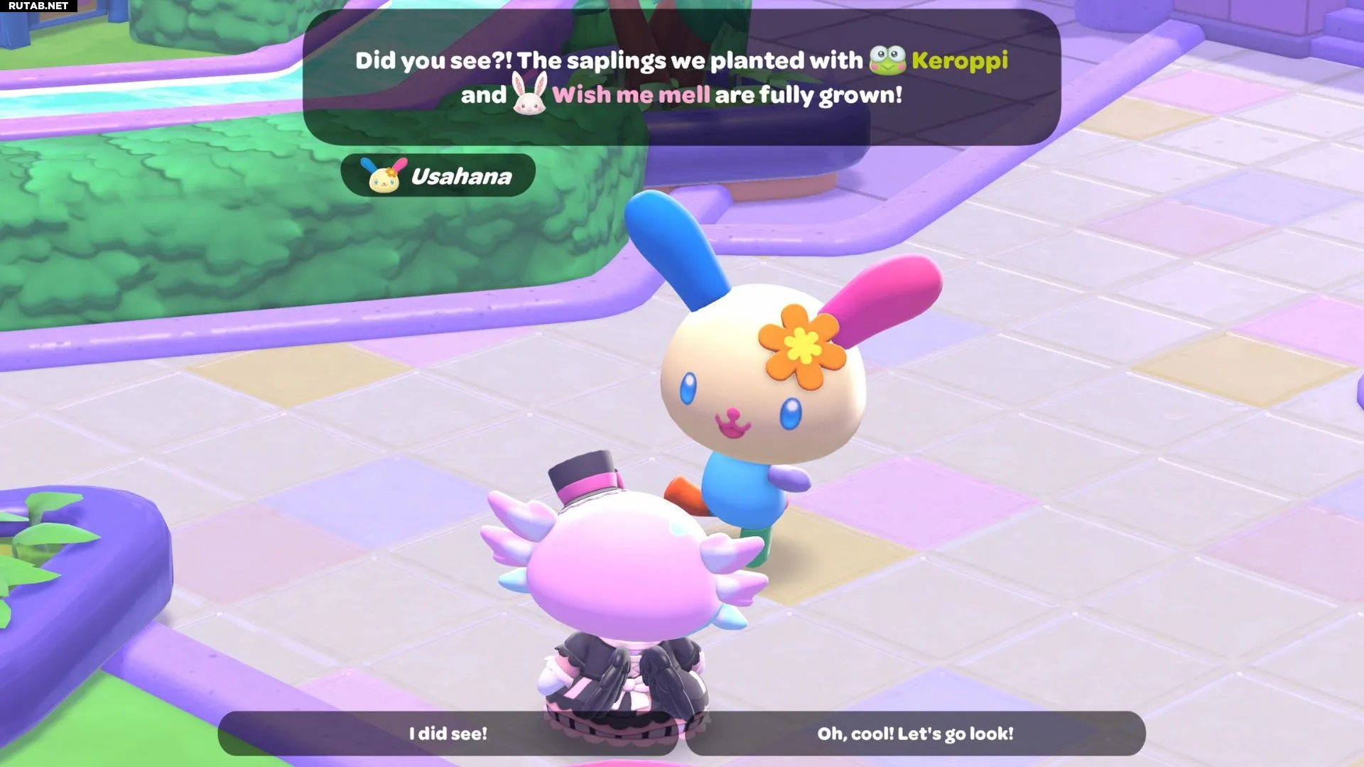 Поговорите с Кероппи здесь, чтобы продолжить задание. К вам подбежит Усахана и скажет, что нашла в городе саженец. Она даст вам Саженец яблони, после чего вам нужно будет побродить по Городскому Городку в поисках других саженцев.