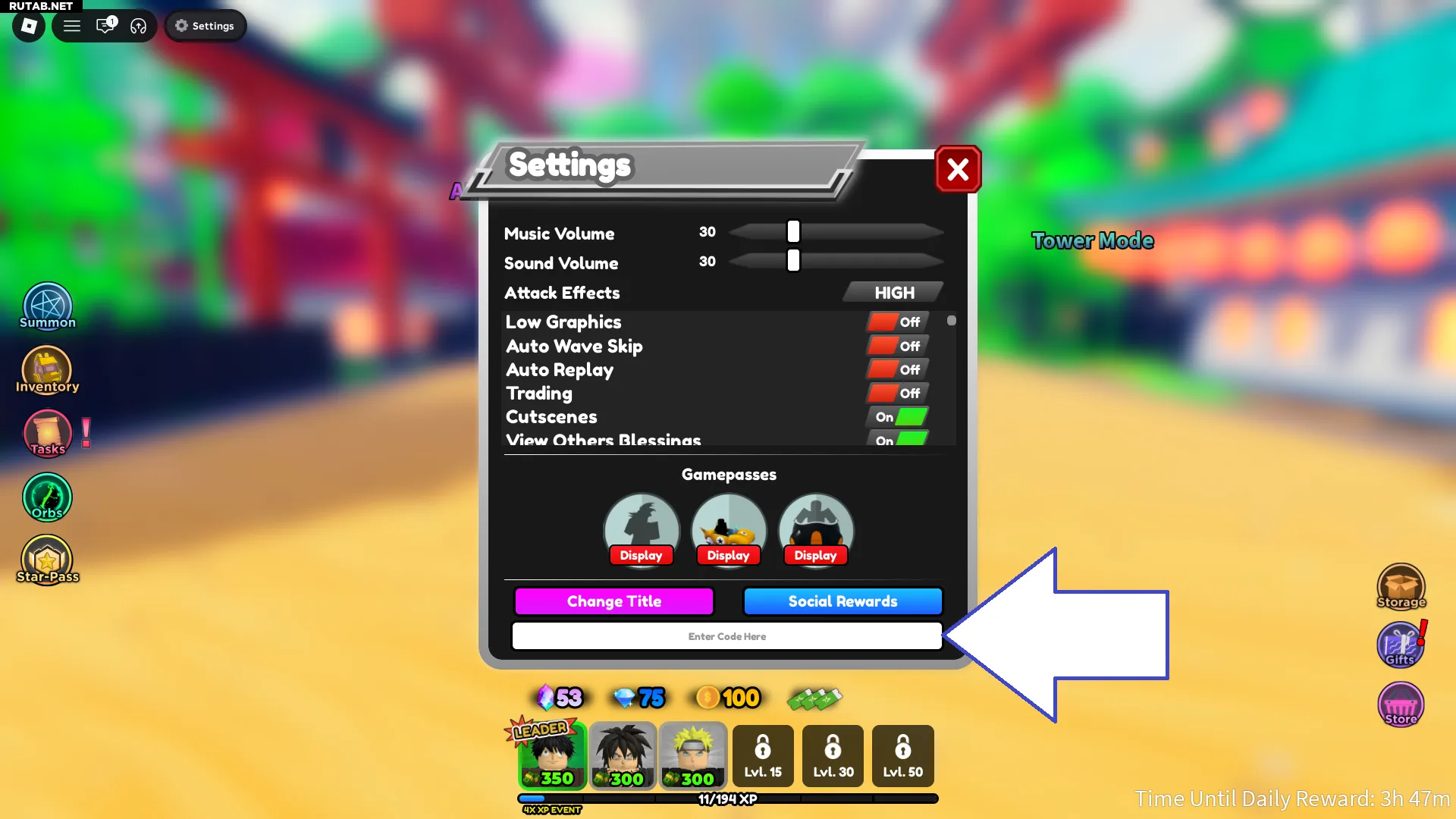 Как активировать коды в All Star Tower Defense