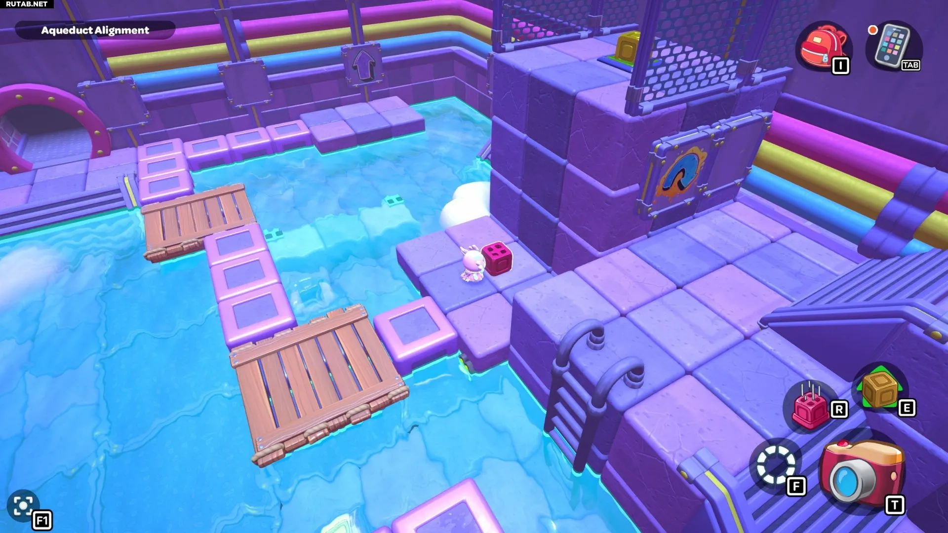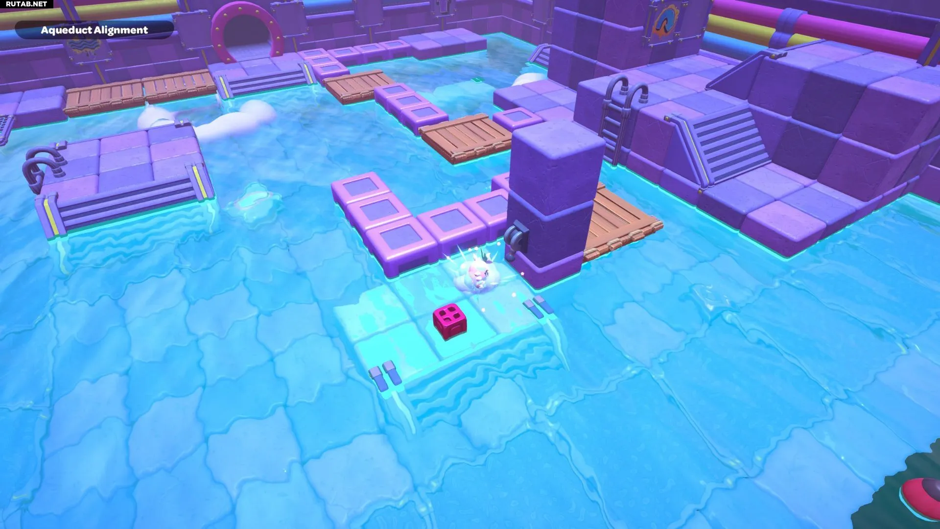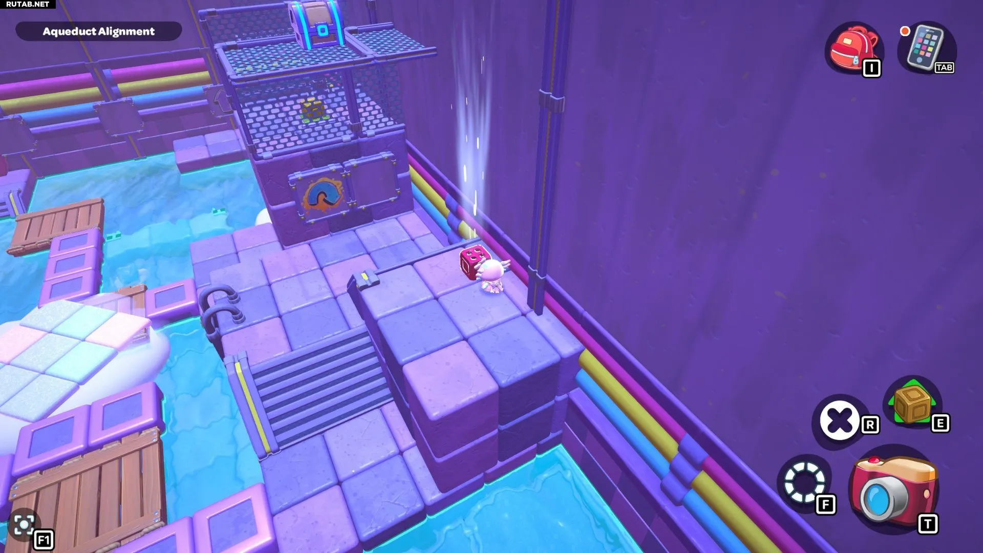 Комната-головоломка «Выравнивание акведука» находится на западной стороне северной части канализации Городка. Чтобы пройти её, вам нужно будет переместить красный куб на платформу под сундуком комнаты.