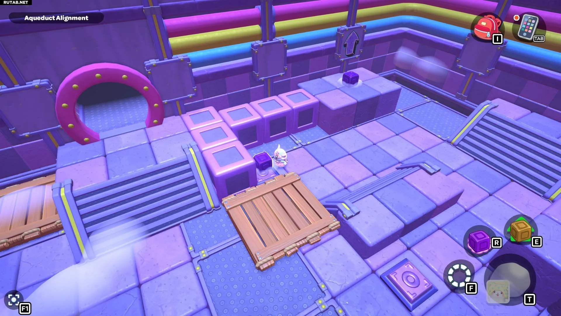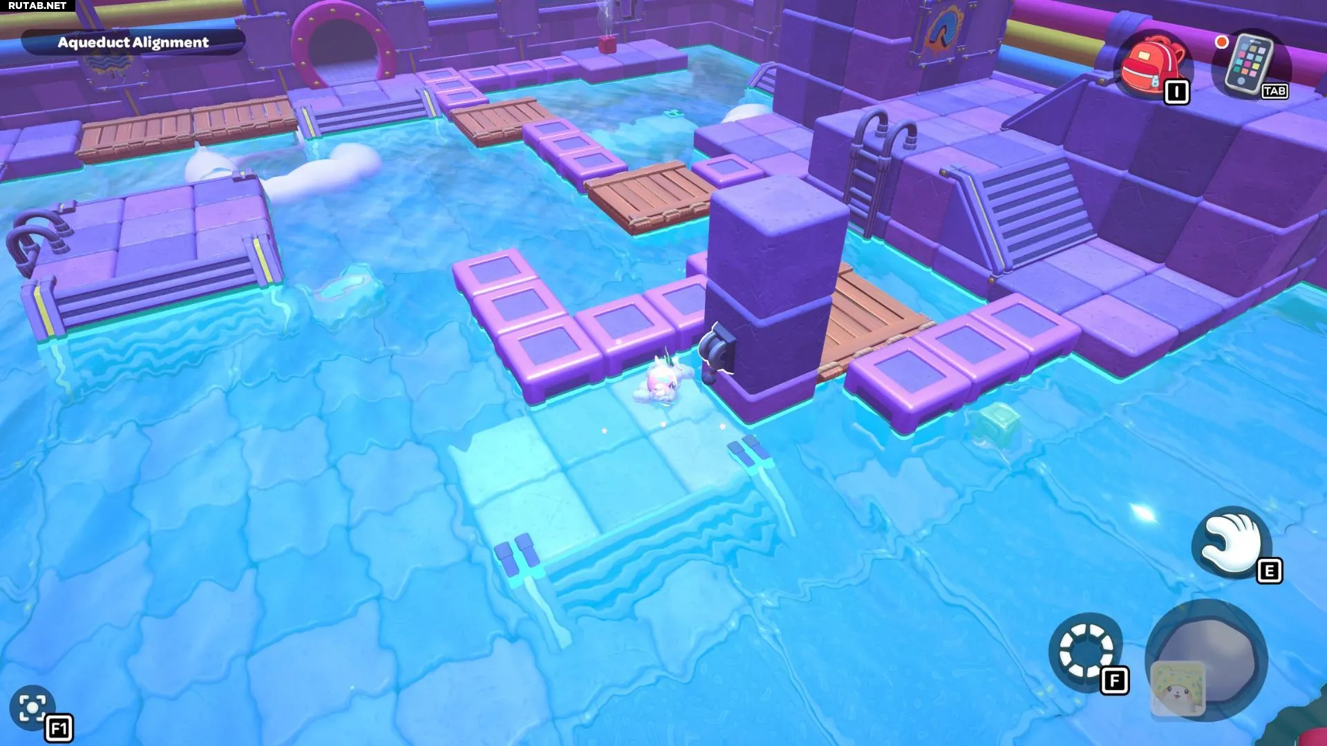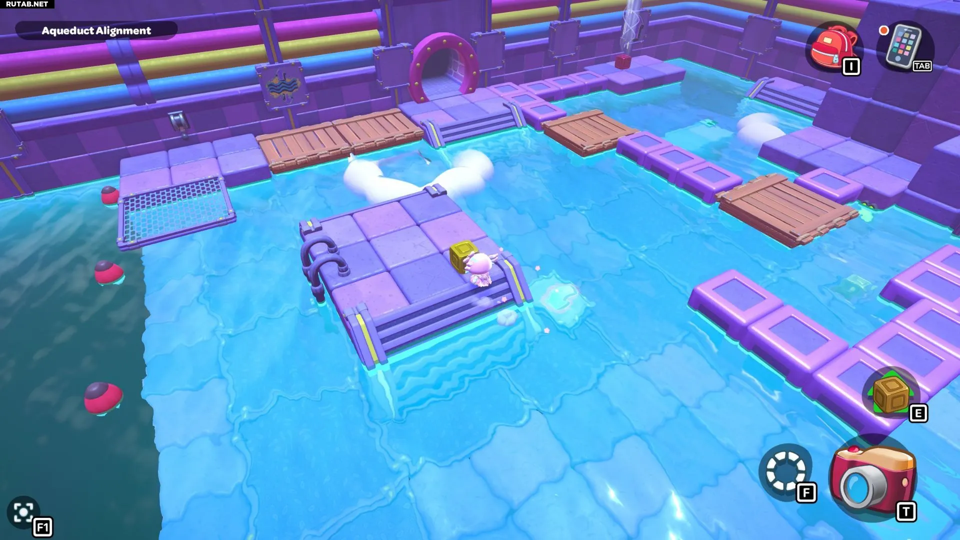 Комната-головоломка «Выравнивание акведука» находится на западной стороне северной части канализации Городка. Чтобы пройти её, вам нужно будет переместить красный куб на платформу под сундуком комнаты.